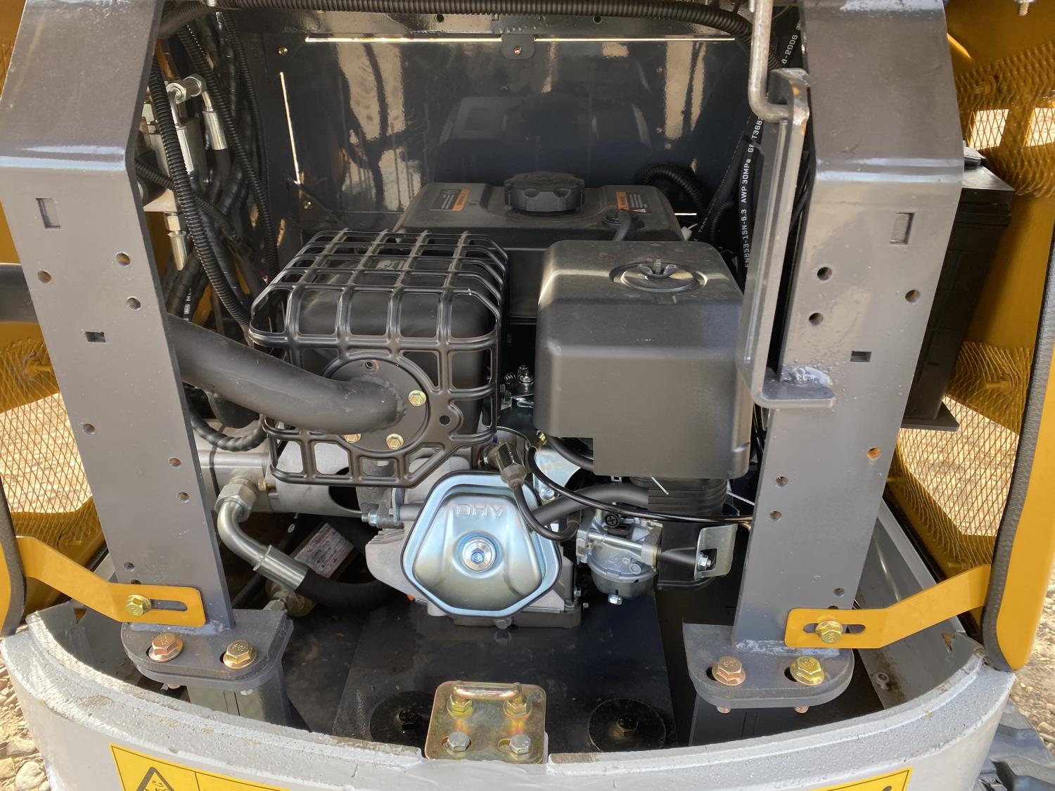 Open station, 15 Hp gas engine, 17 inch dig bucket, hydraulic thumb, 2 Ft 3 inch stick, swing boom, auxiliary hydraulics, 43 backfill blade, 7 inch rubber tracks