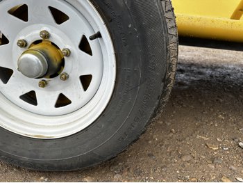 80 inch width, 48 inch height, 2-5/16 ball hitch, spring suspension, tire size 225/75R15
