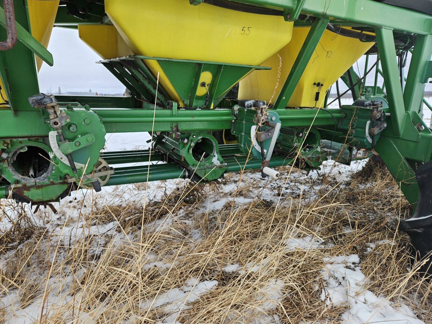 10 inch spacing, double shoot openers, rubber packers, air cart: 3 compartments, loading auger, 340 bu capacity, rear tow hitch