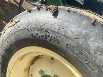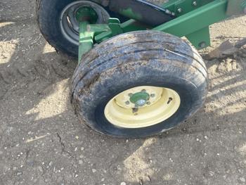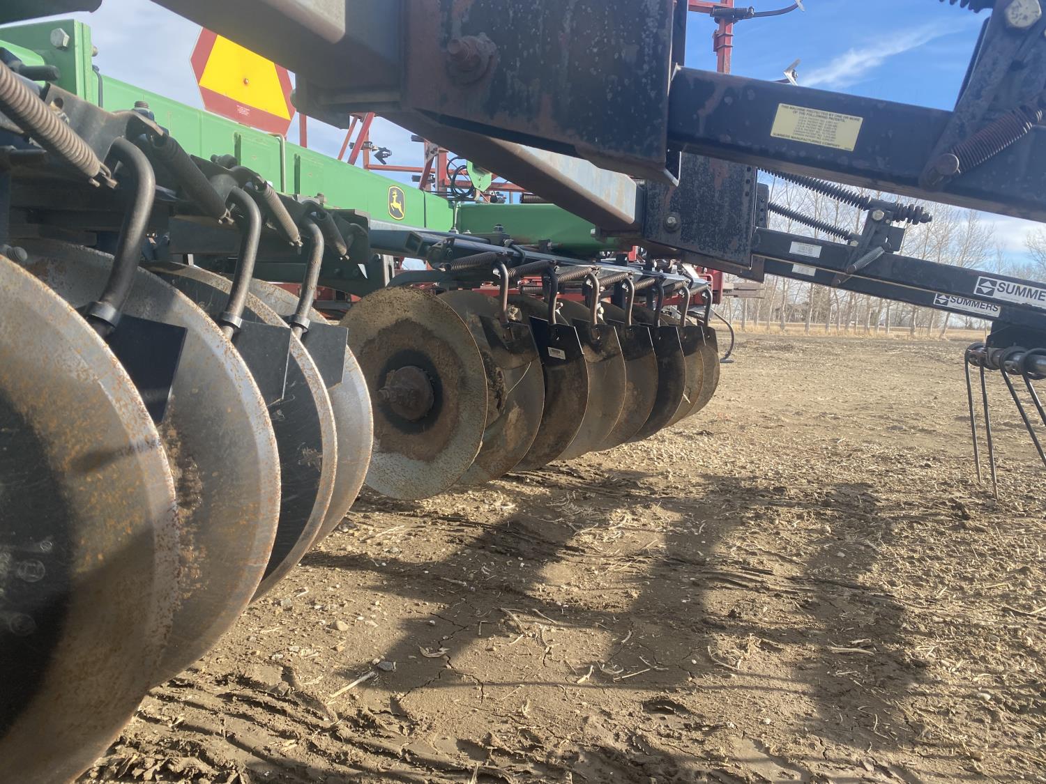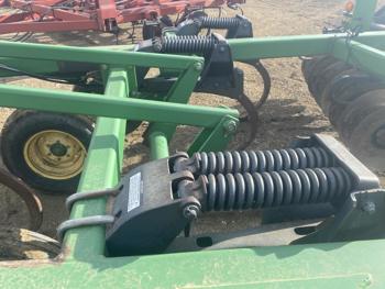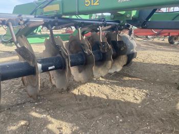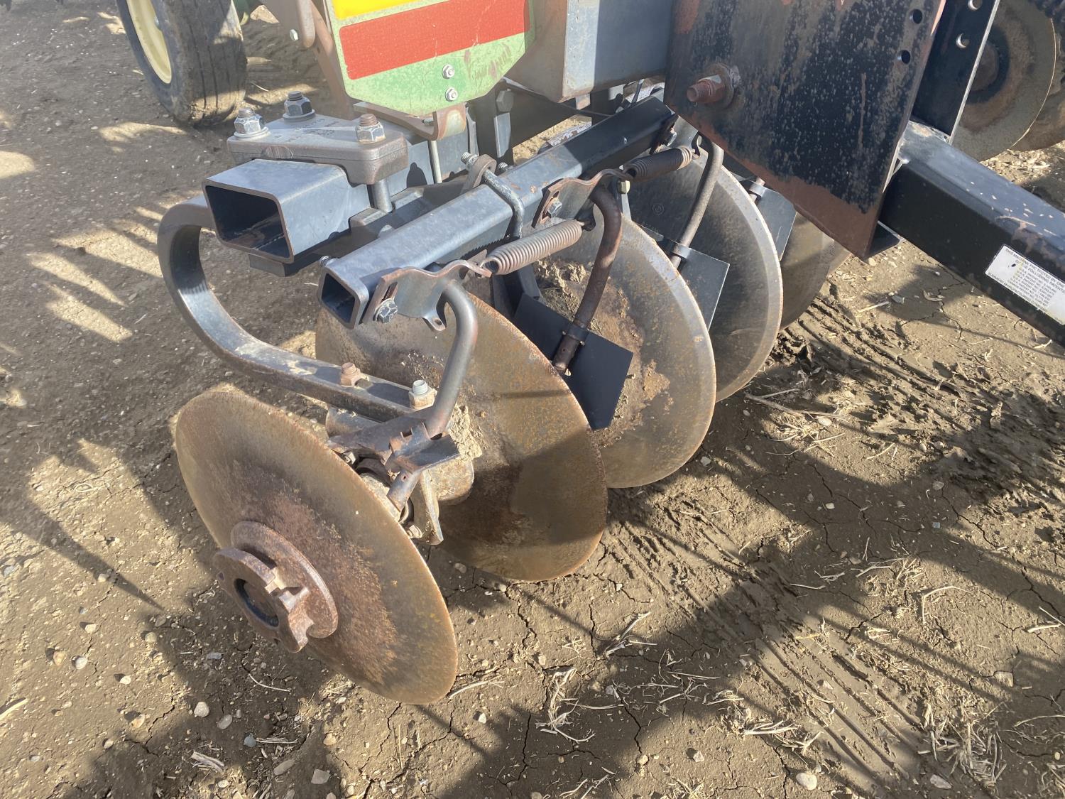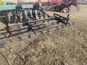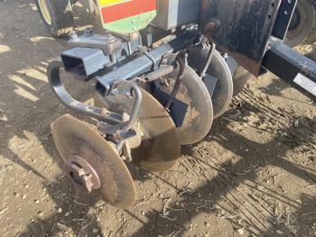 front: 10 inch spacing wavy 24 inch discs, rear: 10 inch spacing smooth 24 inch discs, (5) 7 inch shanks, floating hitch, spring tension scrapers, mounted spring tooth harrows, 11L-15 tires