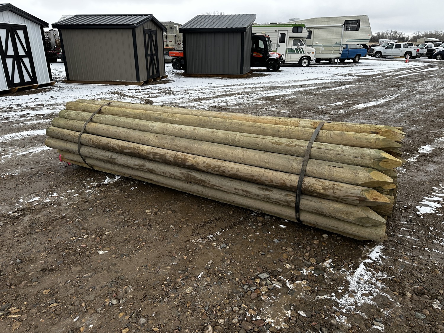 52 Qty of (45) 5-6 Inch X 12 Ft Treated Fence Posts (Unused)