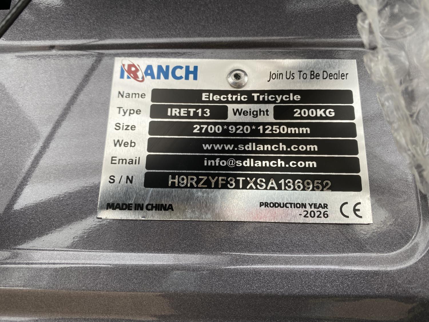 SDLANCH IRET13 60V Electric Tricycle (Unused)