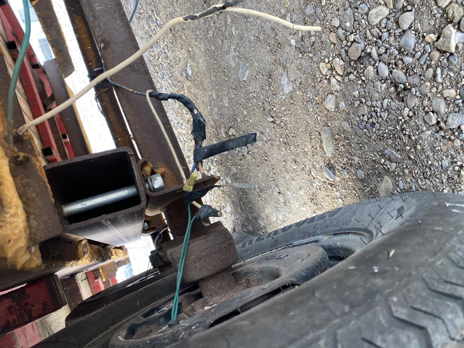 86 inch wide deck, wood deck, electric brakes, torsion suspension, 2-5/16 inch ball hitch, stake pockets, 205/75R14 tires