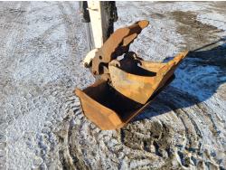 Enclosed cab, pilot controls, Q/C coupler, hydraulic thumb, 1 auxiliary hydraulics, swing boom, backfill blade, 12 inch trenching bucket, 36" clean up bucket, rubber tracks, 12 inch track pads