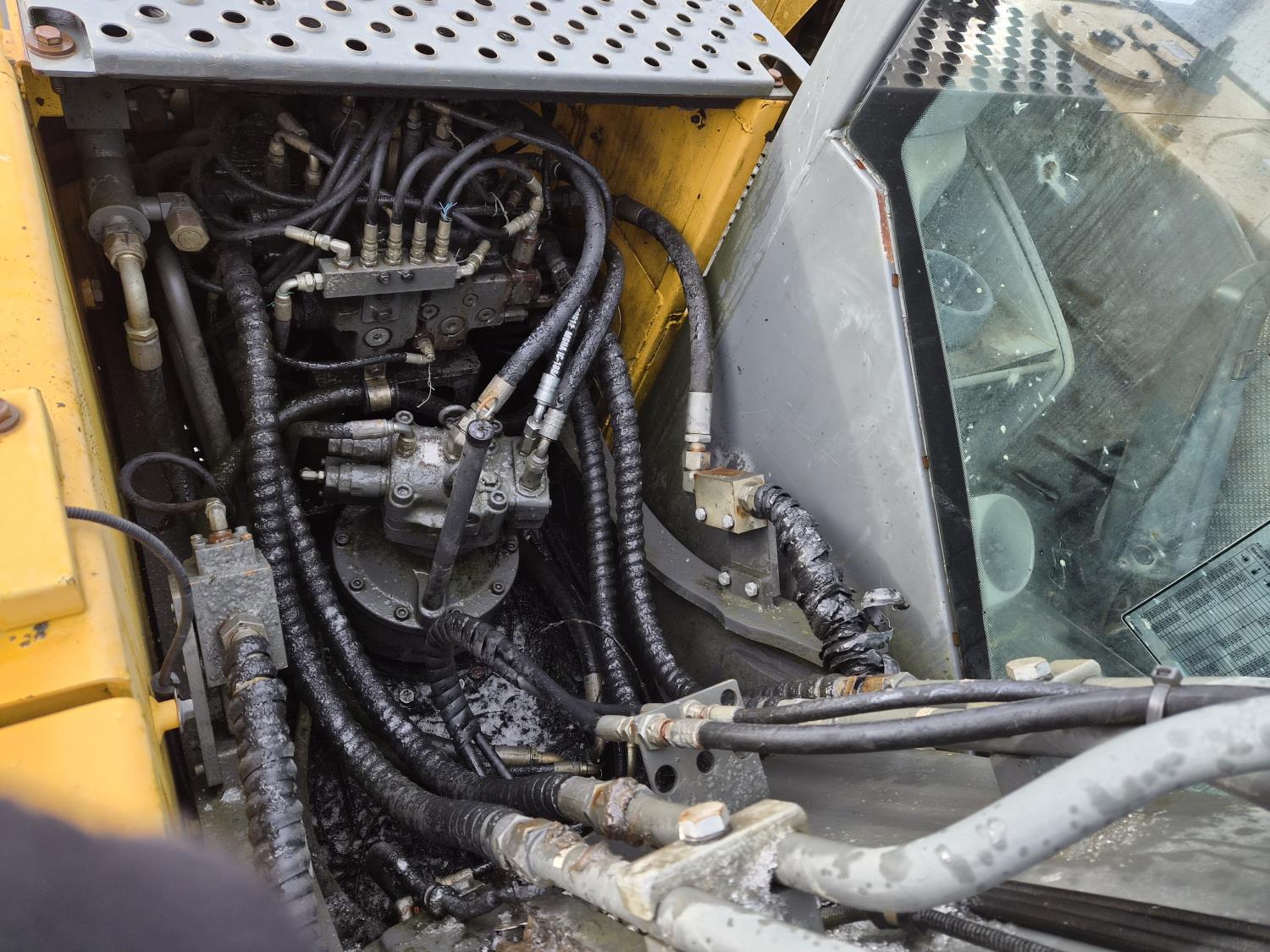 Enclosed cab, control pattern change, pilot controls, 34 inch dig bucket, Q/C coupler, 1 auxiliary hydraulics, Progressive link hydraulic thumb, 24 inch track pads, triple grousers