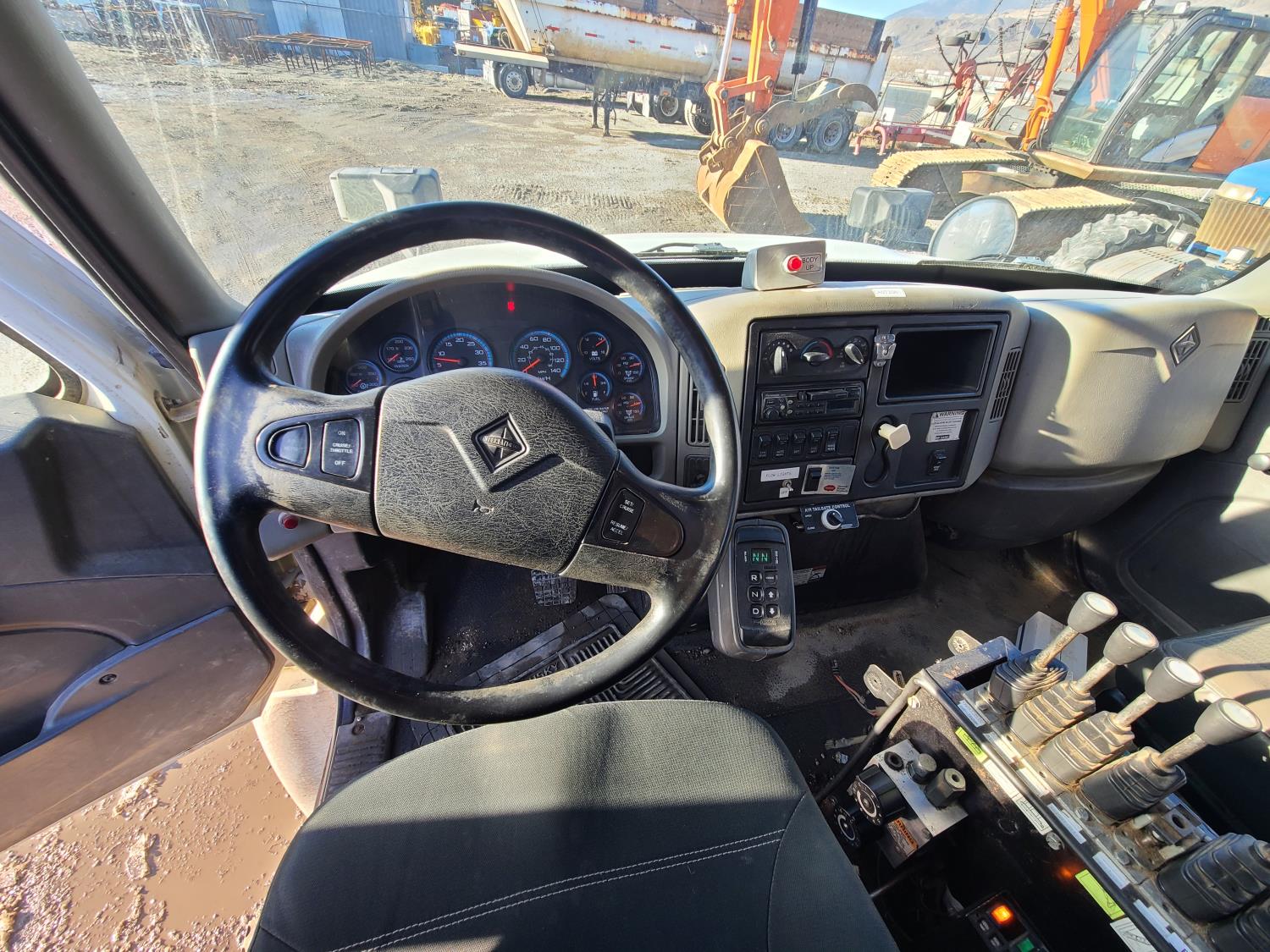 MaxxForce 7.6 L 6 cylinder diesel engine, Allison automatic transmission, A/C, stereo, 11 ft Tenco dump body with left side conveyor and front left spreader, 10 ft underbody blade, air tail gate, roll tarp, 11 ft Tenco reversable front snow plow, spring suspension, 14,000 lb front axle, 22,000 lb rear axles, diff lock, 11R-22.5 tires