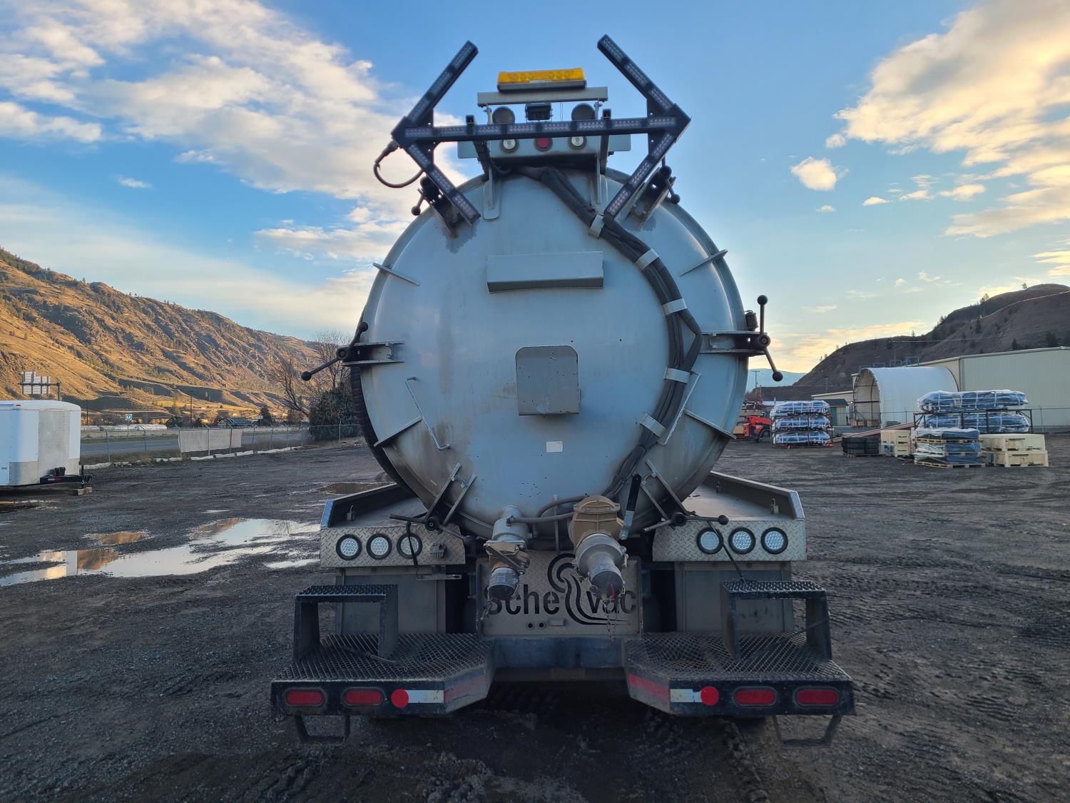 Navistar N13 12.4 L diesel engine, DEF required, engine heater, 6 speed auto shift transmission, A/C, cruise control, air ride driver seat, radio, beacons, Hibon Pump/ Blower PTO pump, Shellevac HVT 2800 10600 liter 44w steel tank, air ride suspension, 20,000 lb front axle, 23,000 lb rear axles, Unit used for removing and transferring waste water and storm water, 425/65R-22.5 front tires, 11R-24.5 rear tires