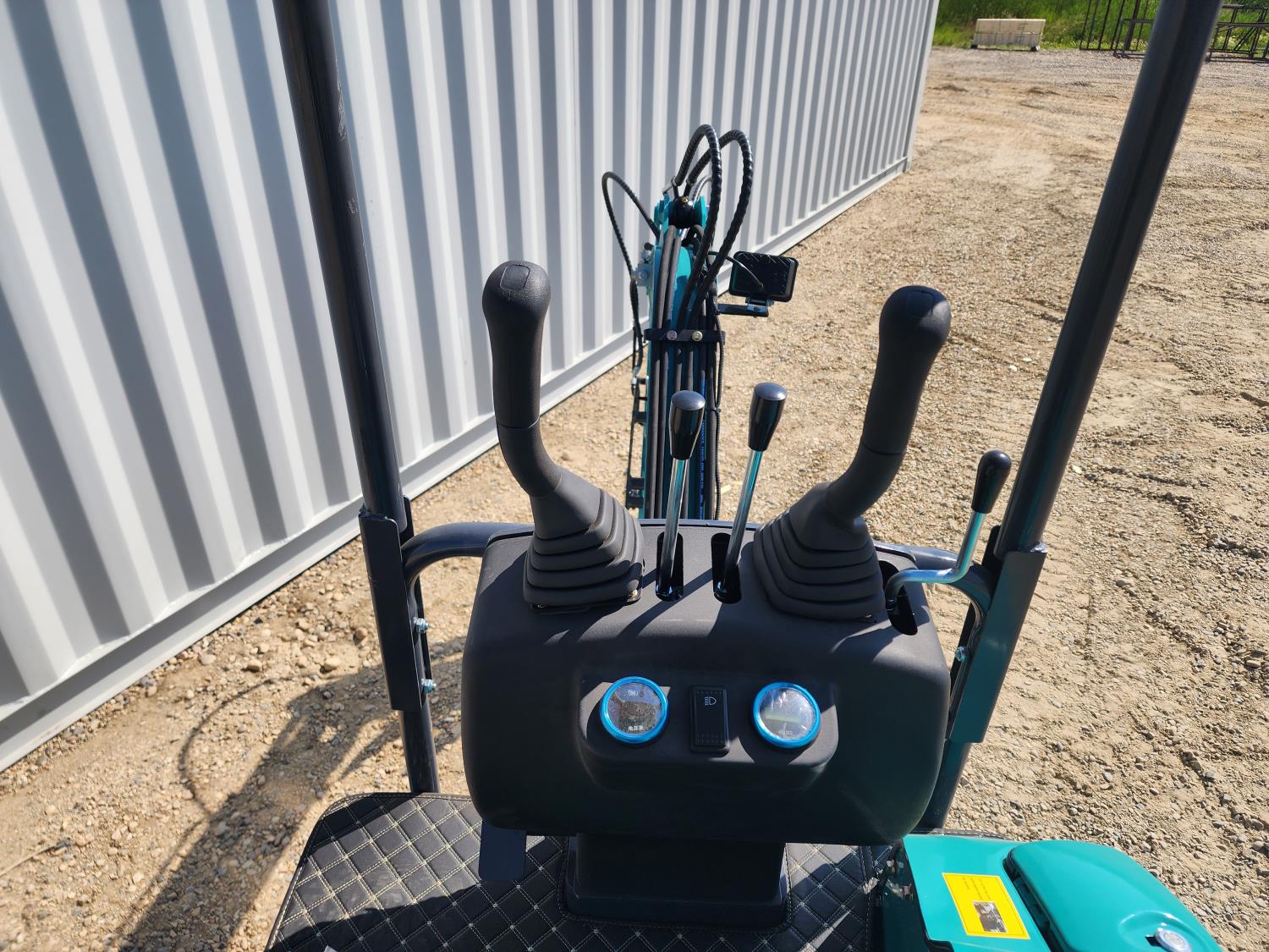 Open station, 420cc gas engine, 15 inch dig bucket, manual coupler, hydraulic thumb, 2 Ft 8 inch stick, backfill blade, 7 inch rubber tracks