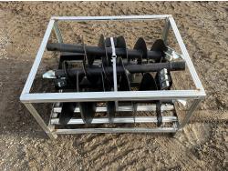 Universal skid steer mounting plate, standard flow hydraulic driven pump, flat face couplers, 18 Inch, 12 Inch, 9 Inch auger bits