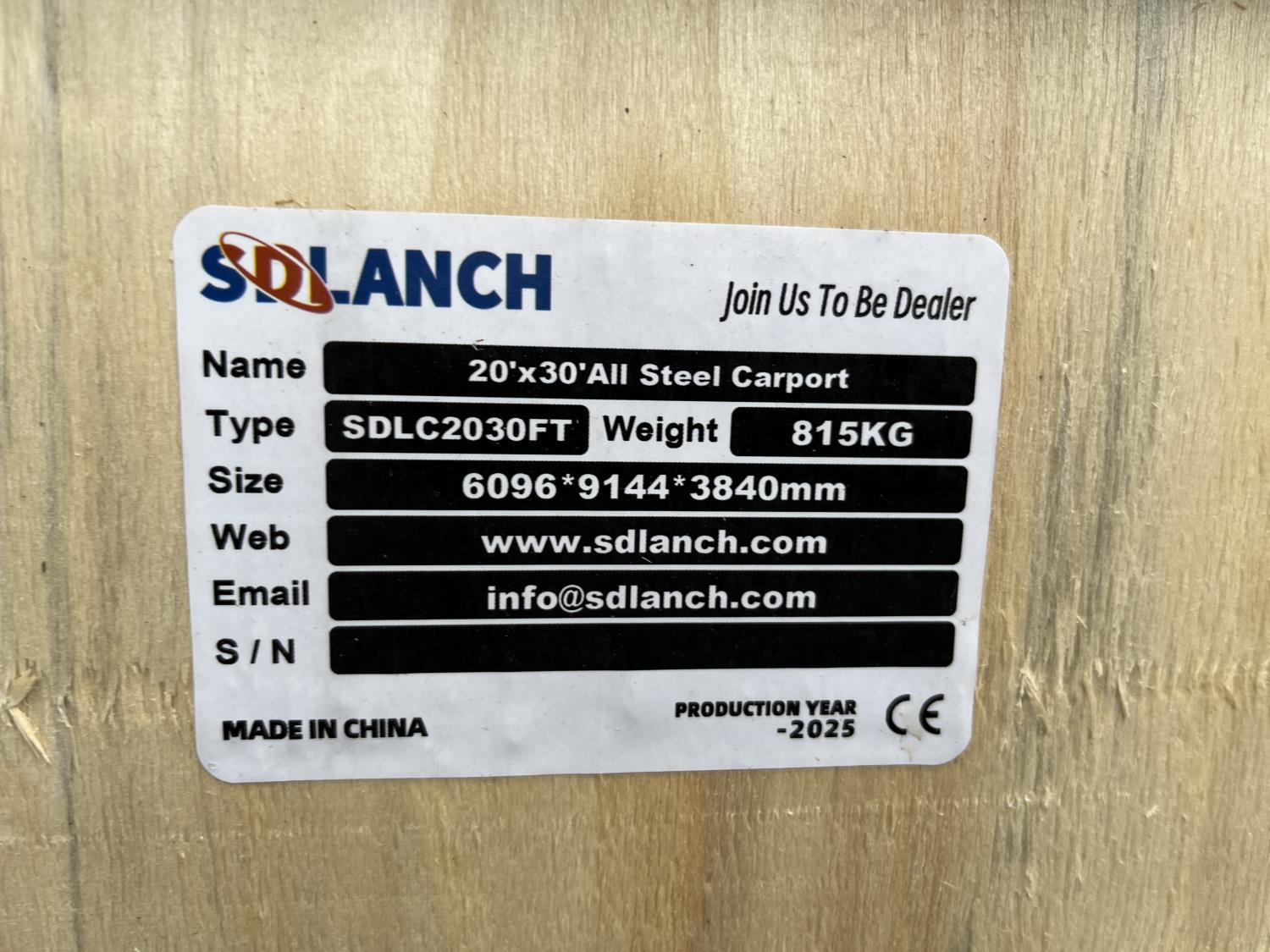 2025 SDLANCH SDLC2030 20 Ft X 30 Ft Fully Enclosed Steel Carport (Unused)