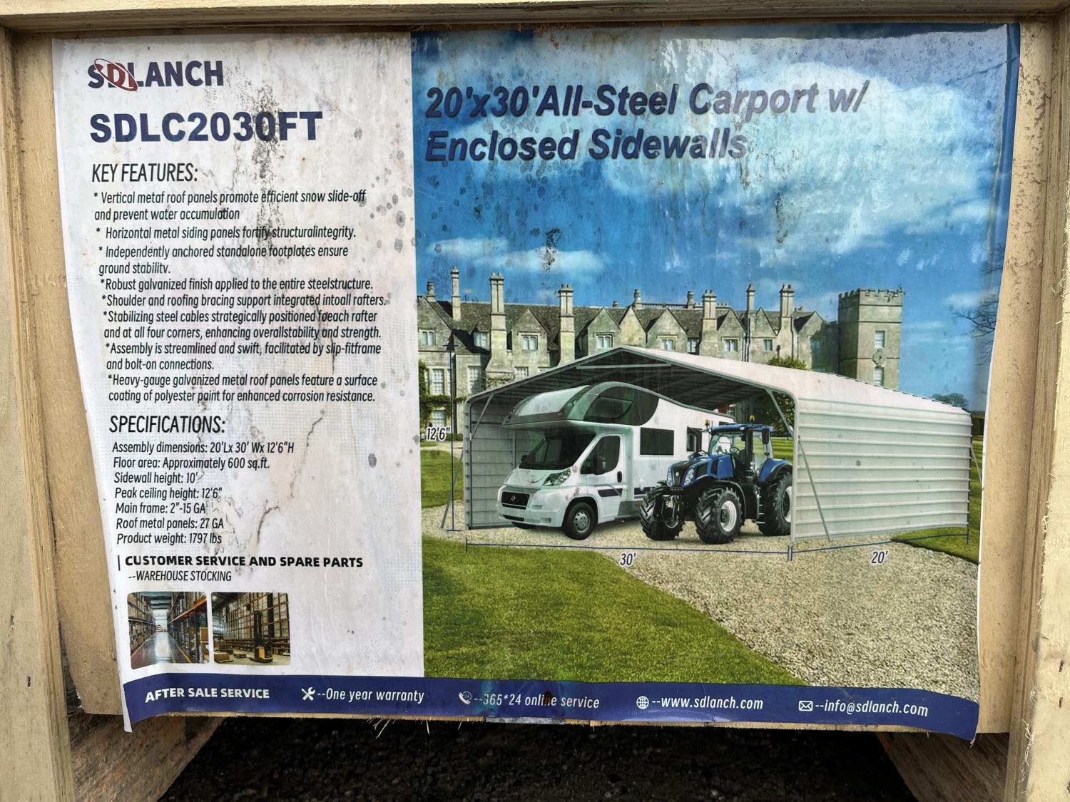 40 2025 SDLANCH SDLC2030 20 Ft X 30 Ft Fully Enclosed Steel Carport (Unused)