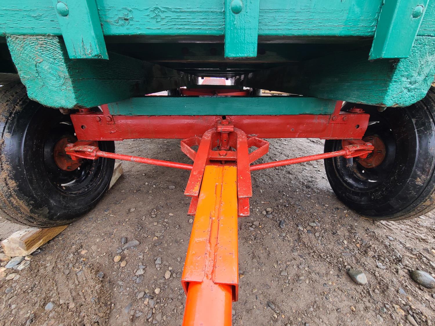 Wagon was in use at Calgary heritage park for 20 years. 22 passenger, truck or tractor drawn. Flip out steps and spring ride driver seat. 14.5 ft long and 7 ft wide, greaseable bearings and king pin.
