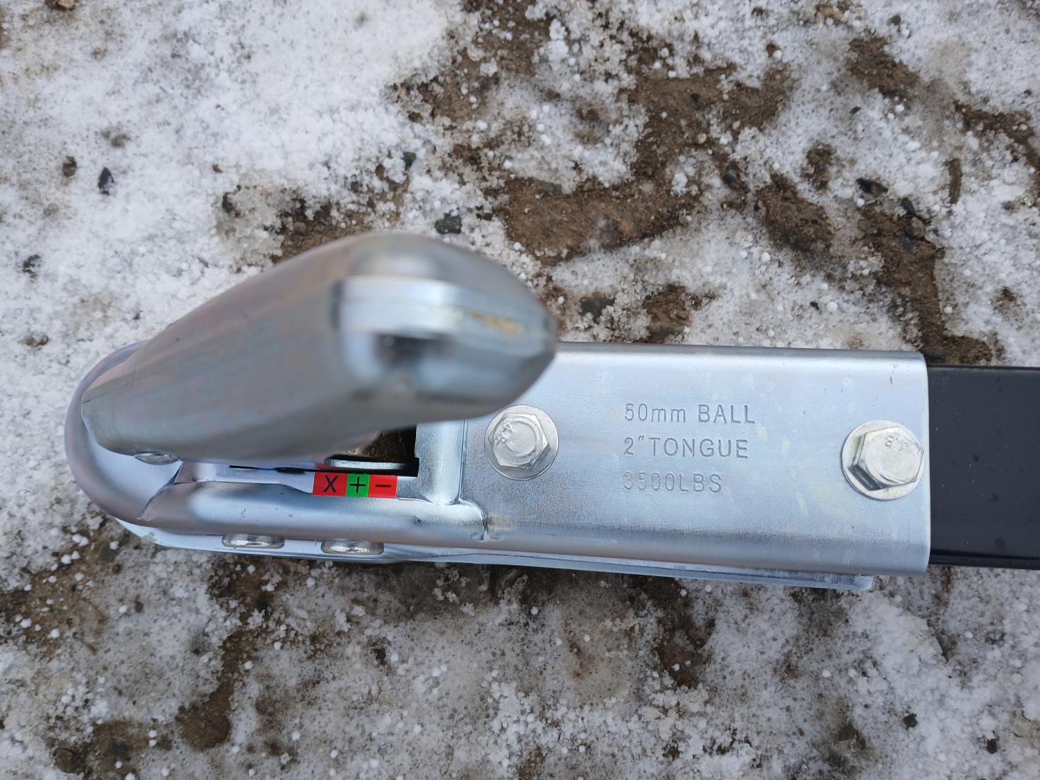 4.7 Ft length X 2.4 Ft width in size, 2 inch ball hitch, tow weight 3,500 lb. 16 X 6.50-8. 4 ply tires
