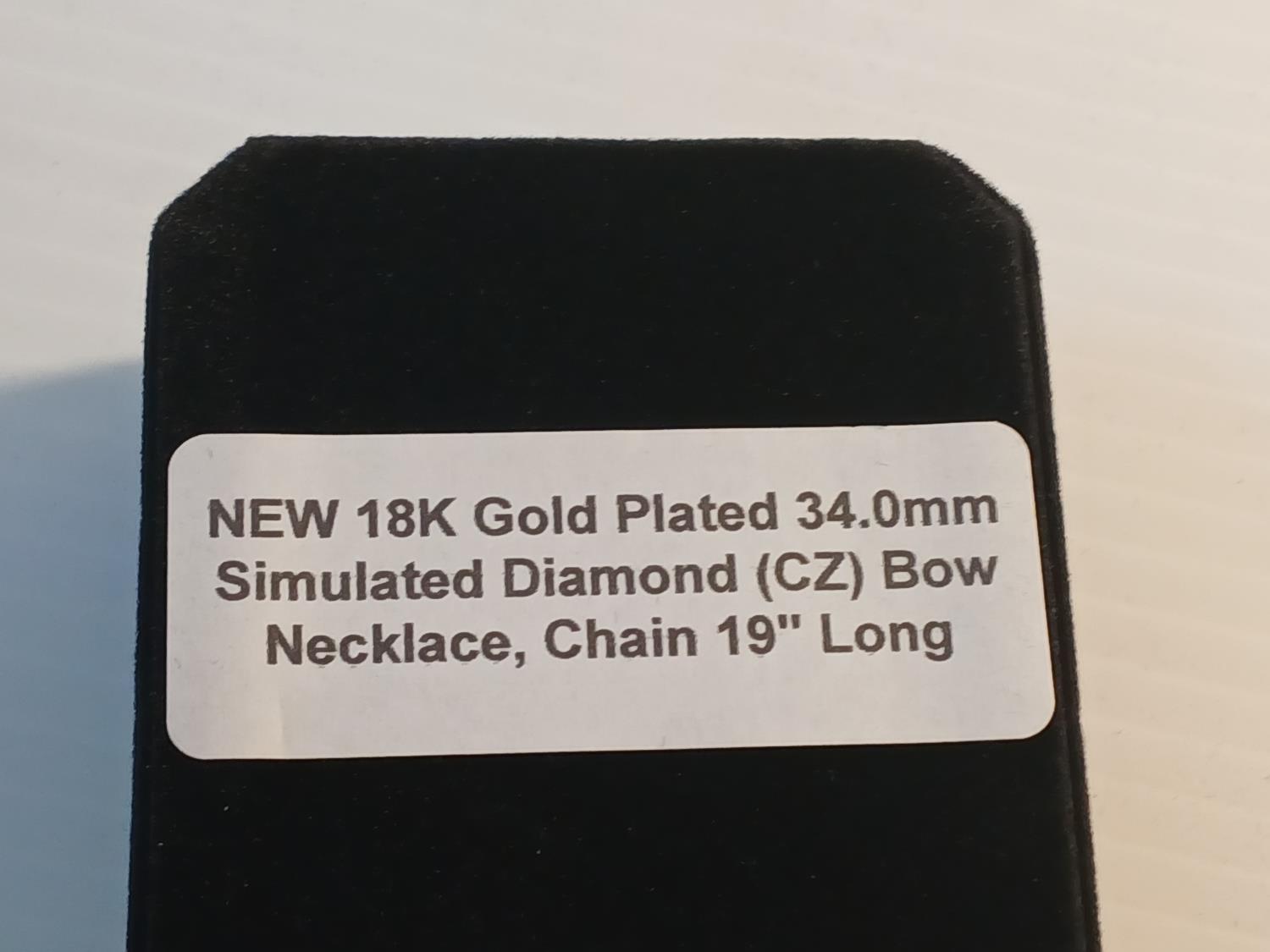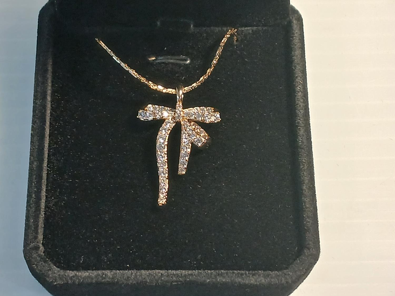 523 18K Gold Plated Simulated Diamond (CZ) Bow Necklace (Unused)