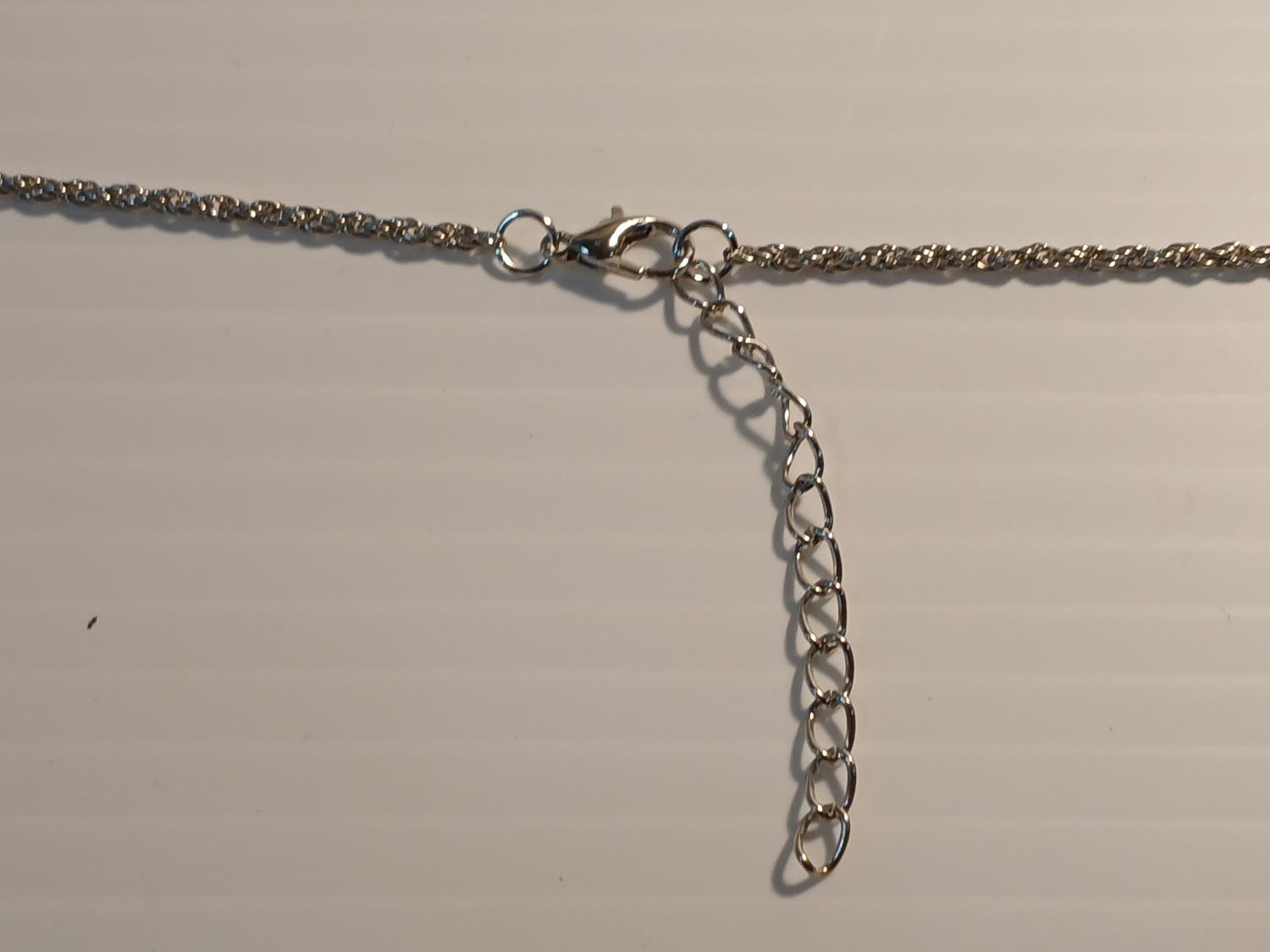 20 Inch chain, 2 inch leader, lobster claw clasp, small rose accent pendant