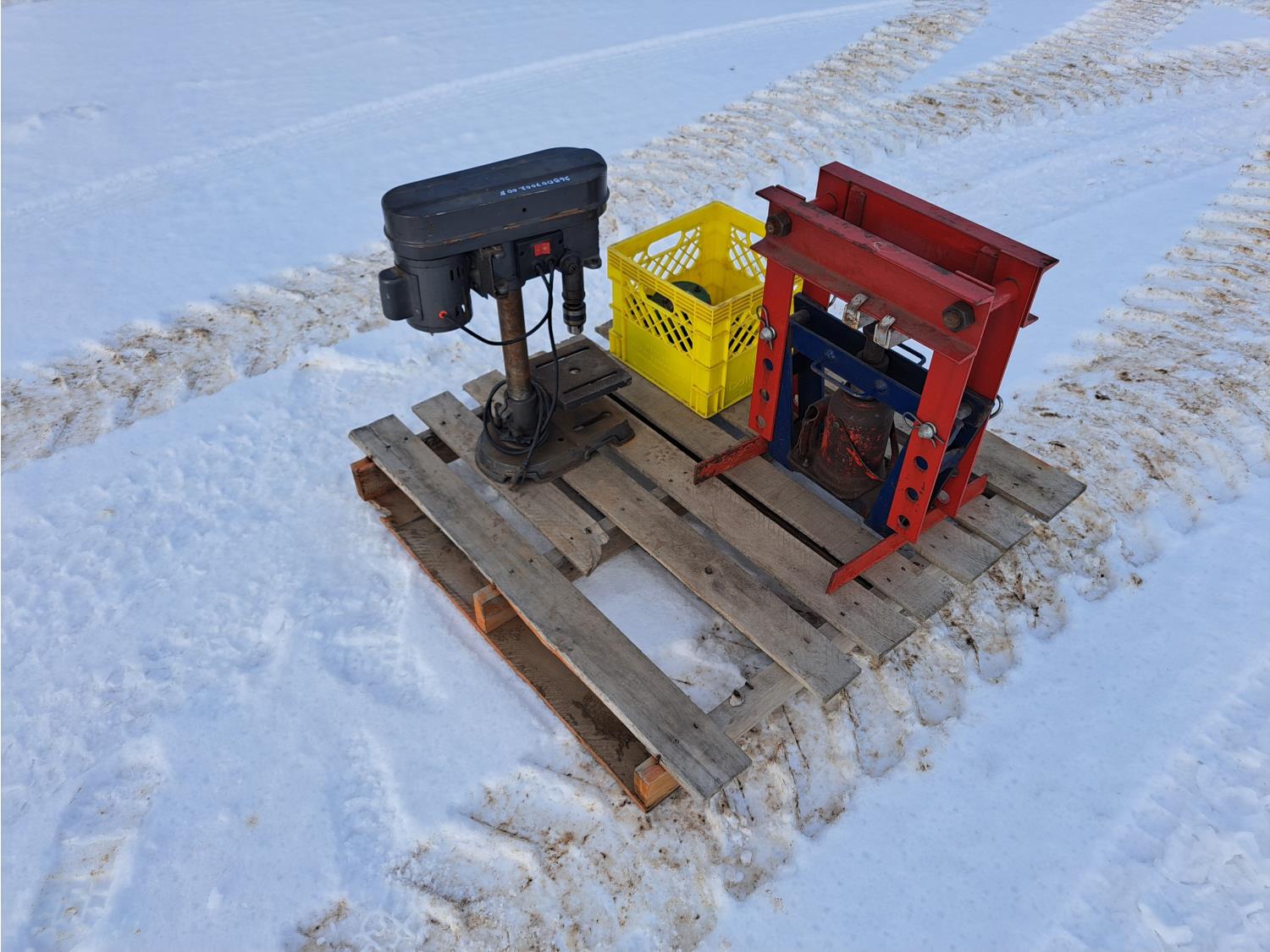 100 1/3 HP Drill Press, Shop Press & 1/2 Ton Chain Hoist