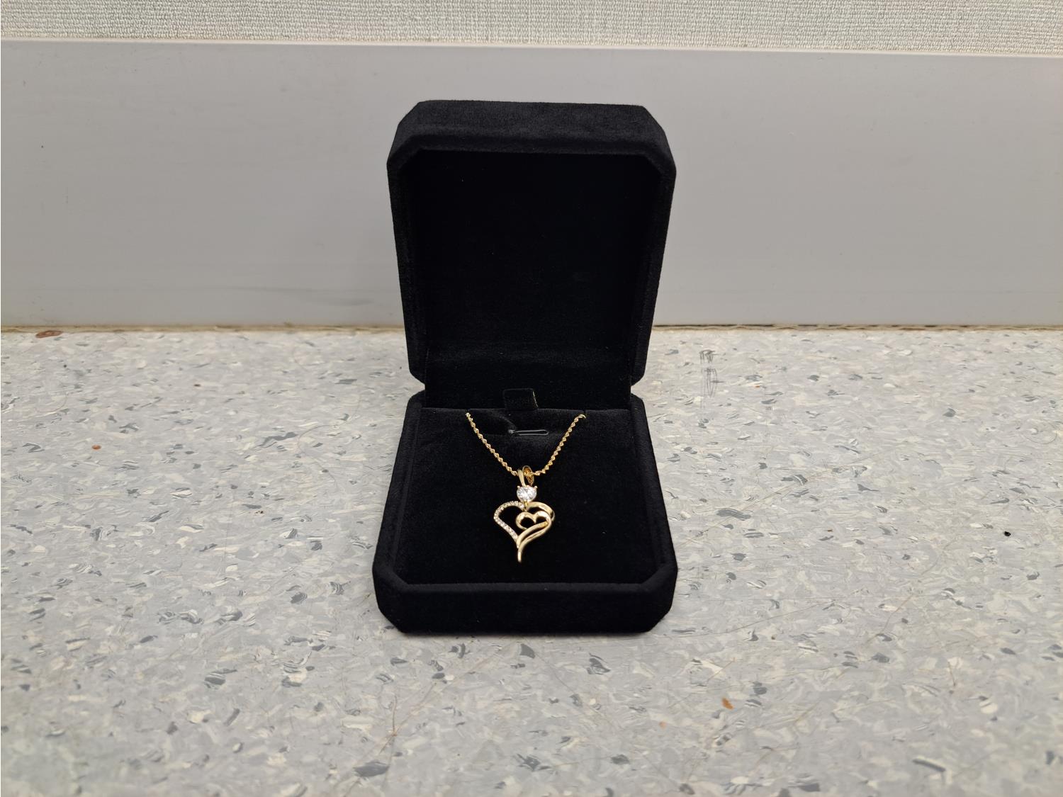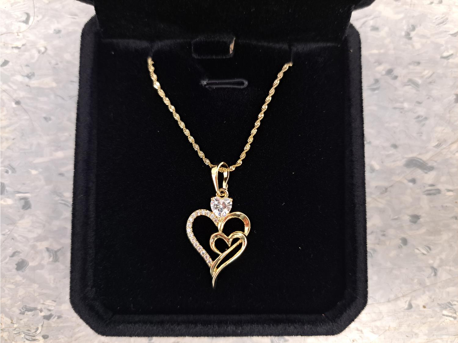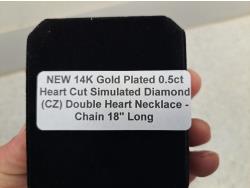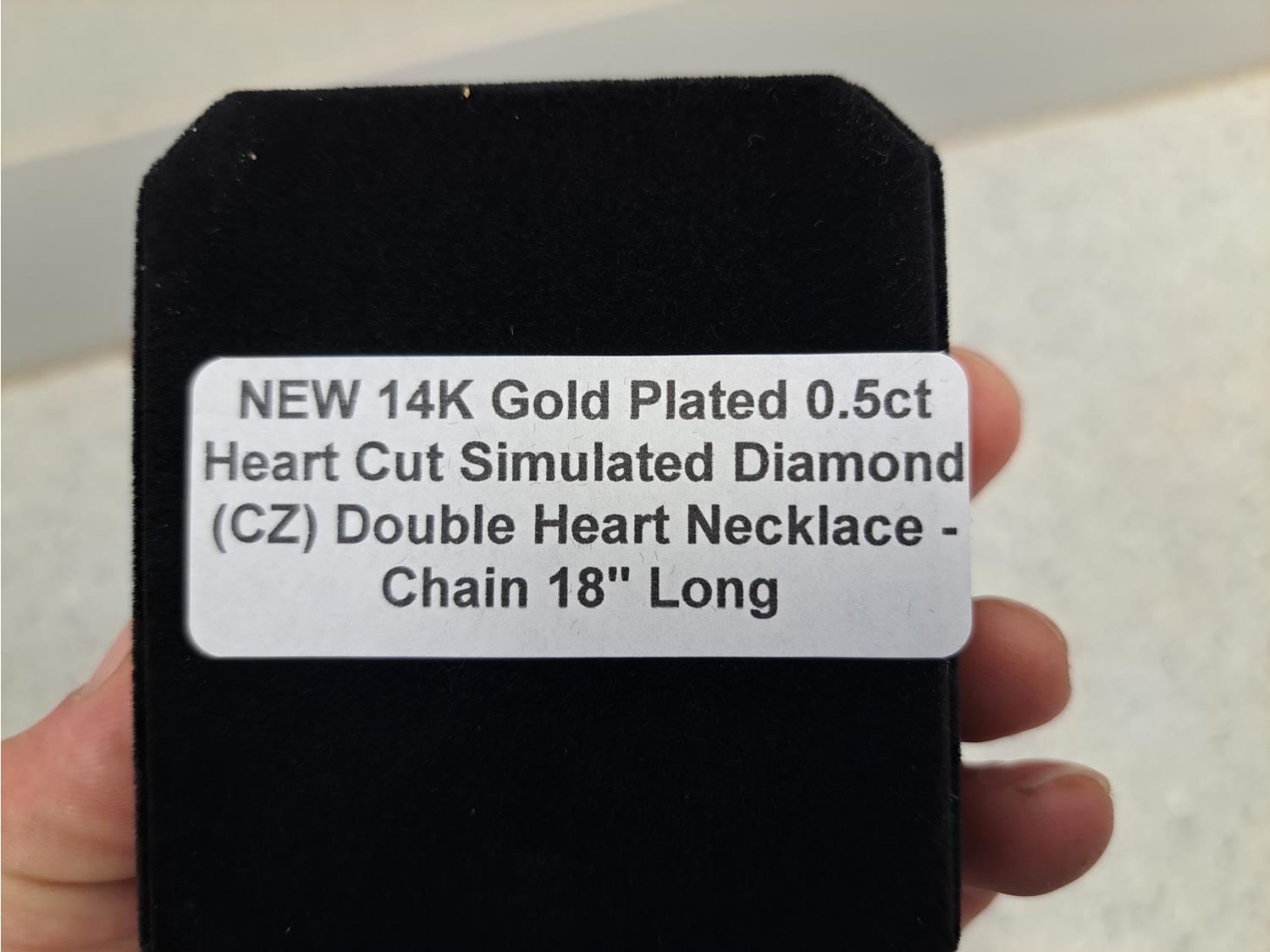 17 14K Gold Plated 0.5Ct Heart Cut Simulated Diamond Double Heart Necklace (Unused)