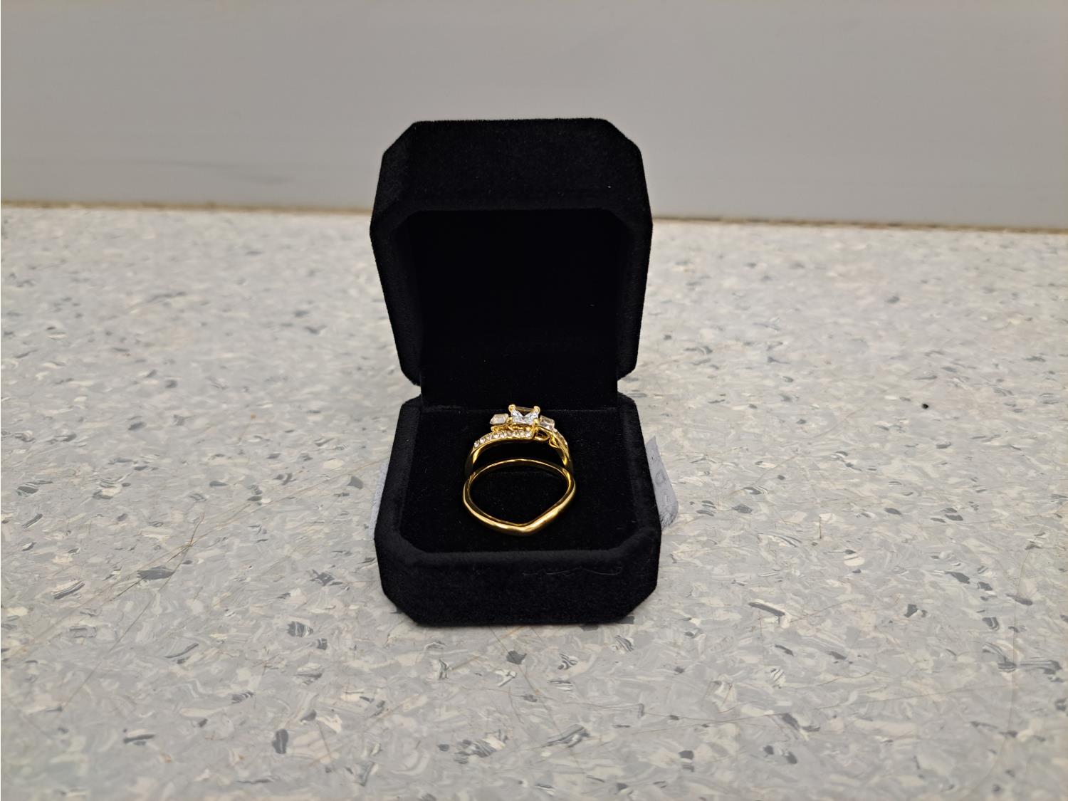 14K Gold Plated 1.0Ct Princess Cut Simulated Diamond Trinity Ring Set (Unused)