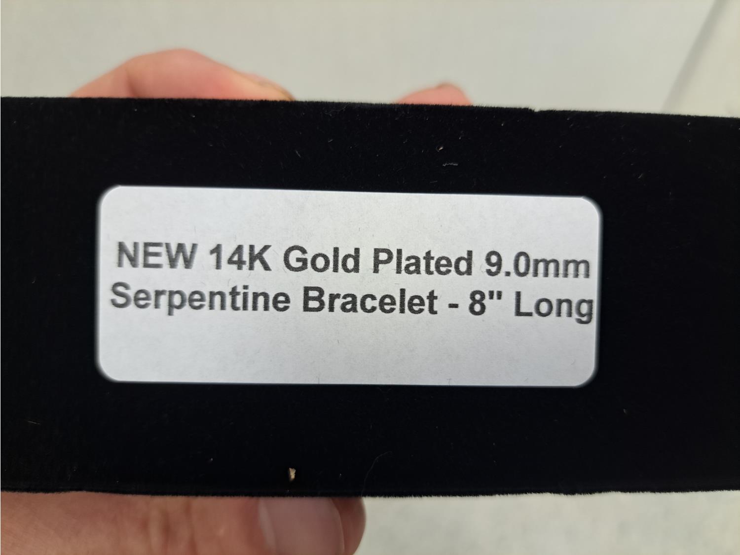 12 14K Gold Plated 9.0 mm Serpentine Bracelet (Unused)