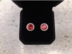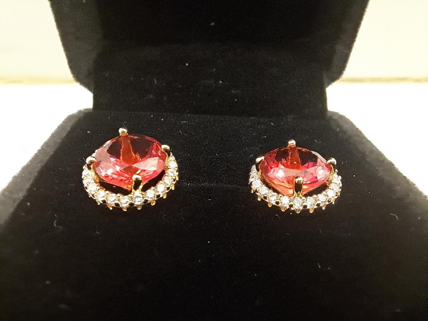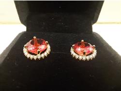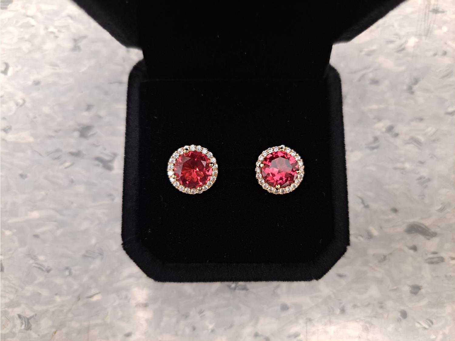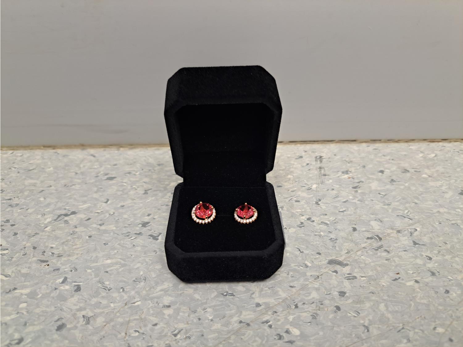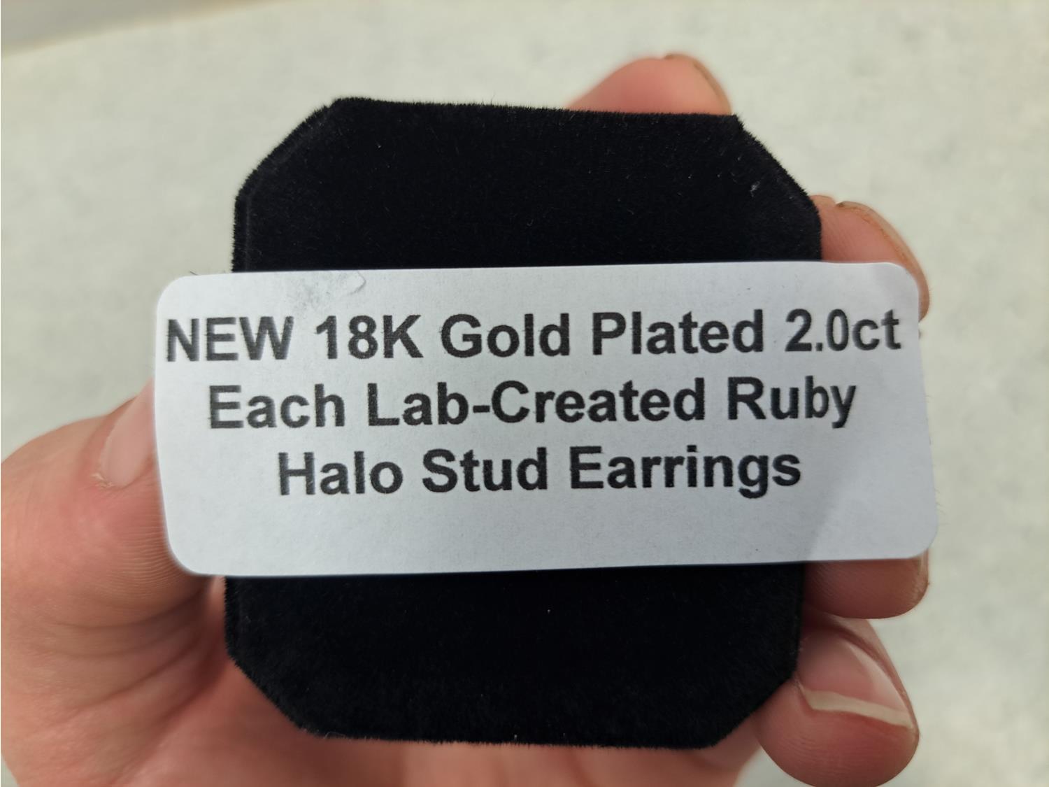 22 18K Gold Plated 2.0Ct Each Lab-Created Ruby Halo Stud Earrings (Unused)