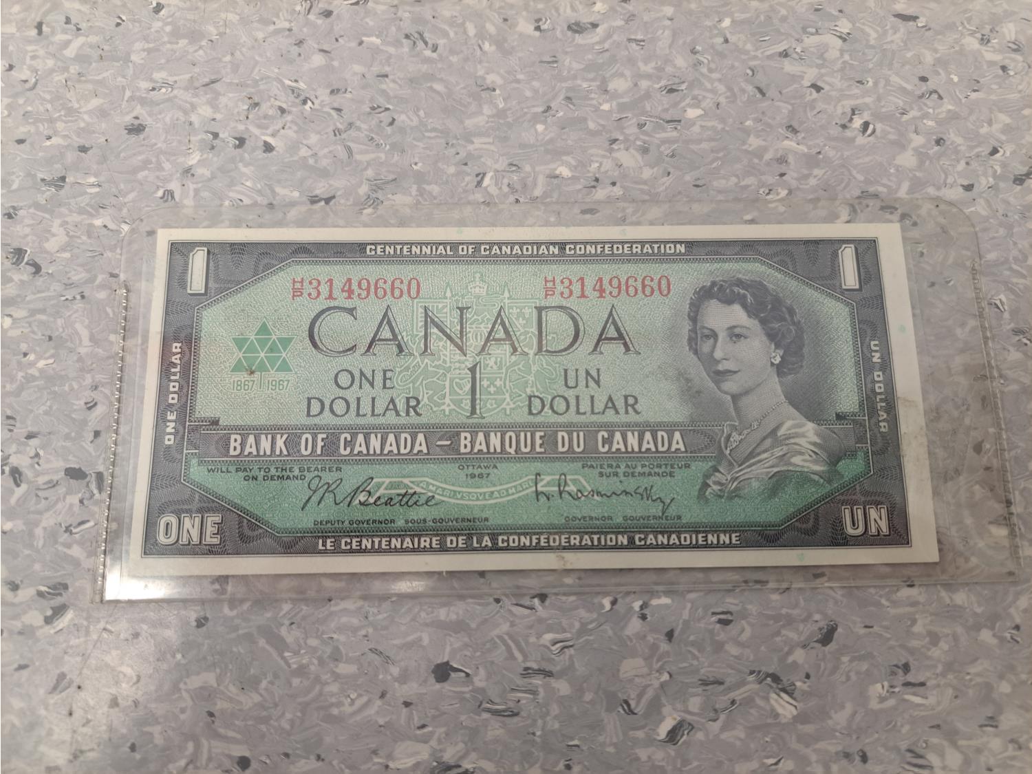 284 1967 Canadain 1 Dollar Bill