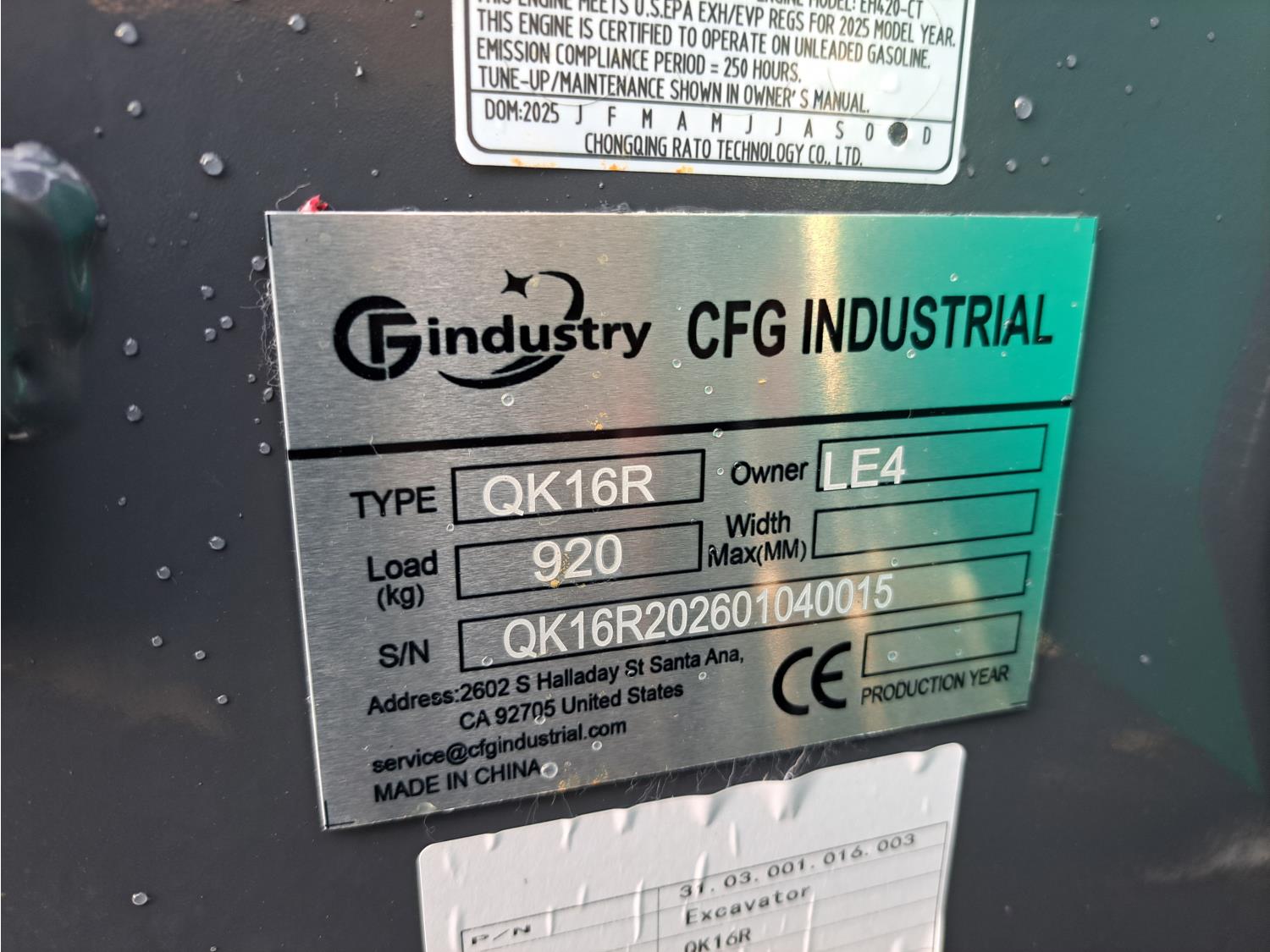390 2026 CFG QK16R Mini Excavator (Unused)