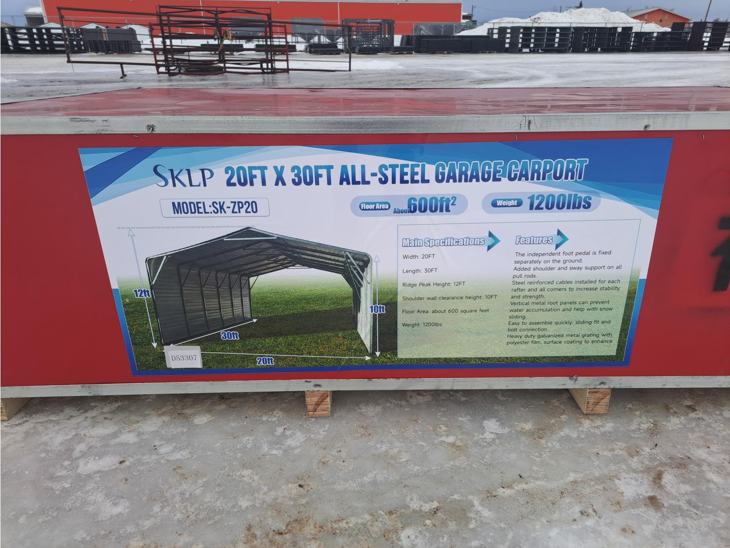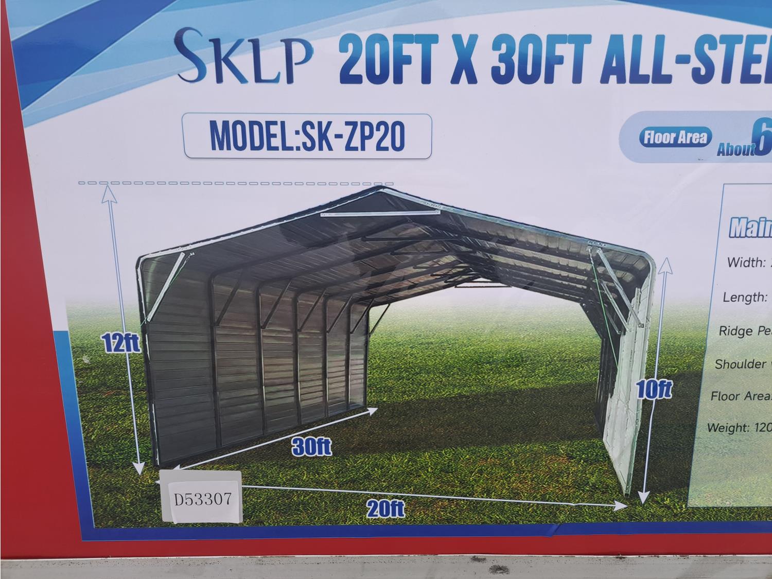 56 2026 SKLP SK-ZP20 All-Steel 20 Ft X 30 Ft Garage Carport (Unused)