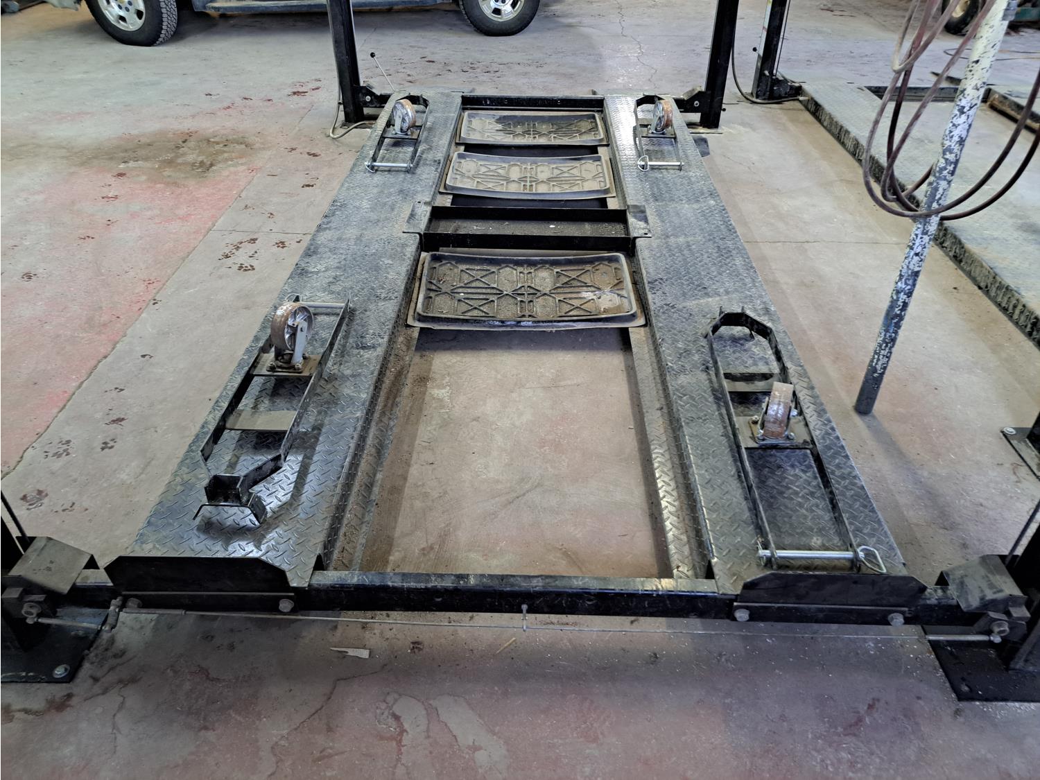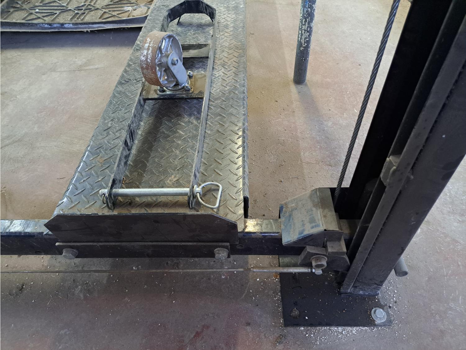 1 HP electric engine, 93 inch wide space between post, 13 ft 10 inches long, c/w dolly wheels