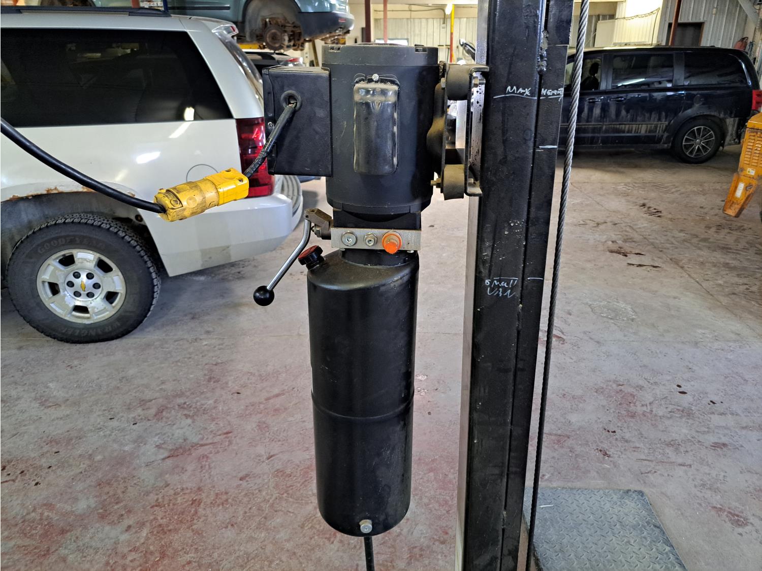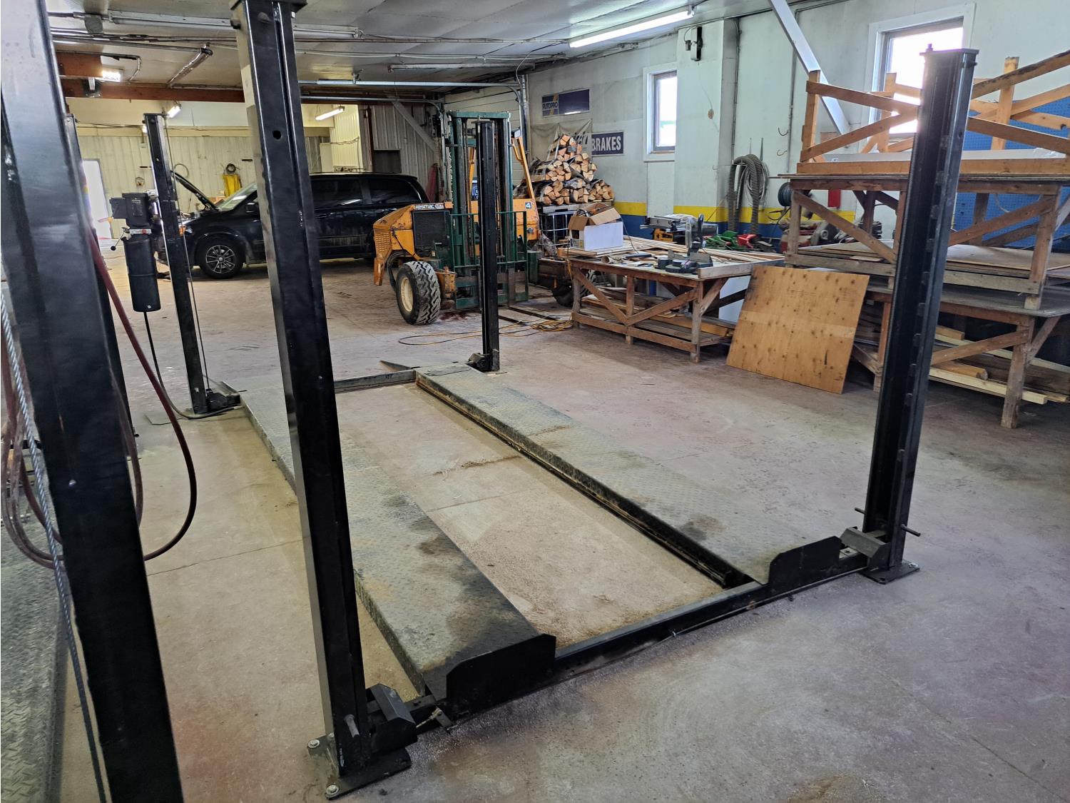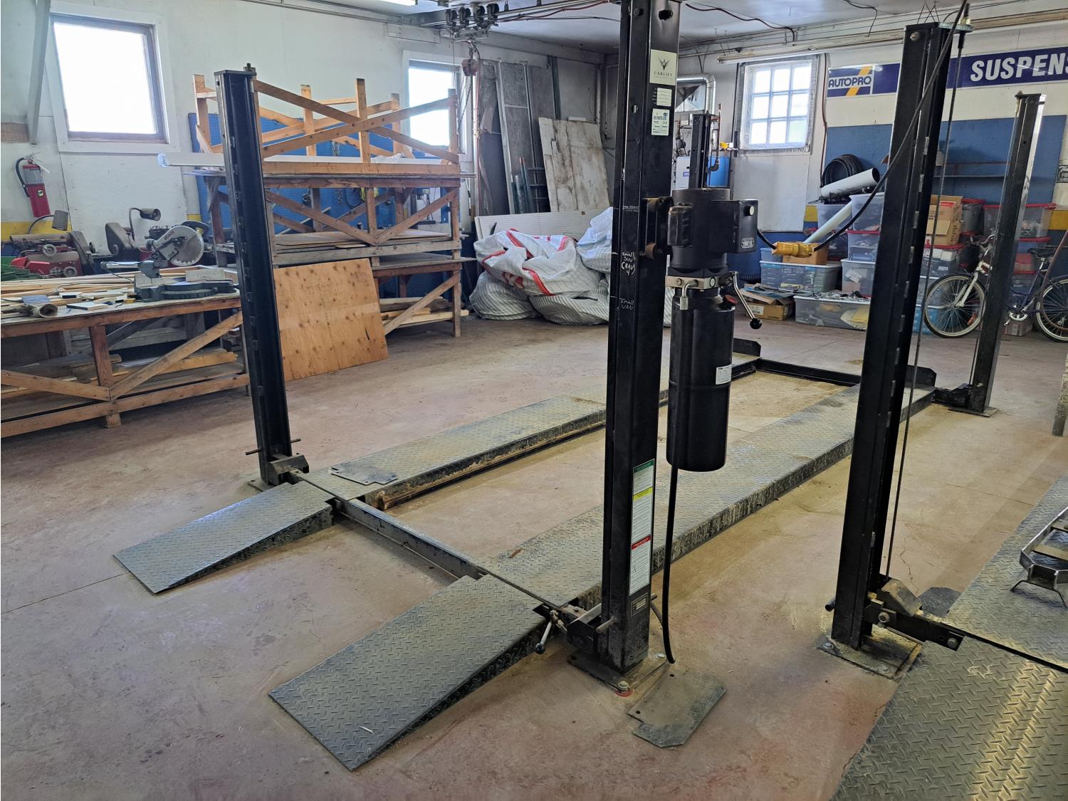 1 HP electric engine, 93 inch wide space between post, 13 ft 10 inches long