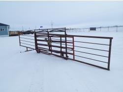 24 ft free standing panel, 12 ft livestock gate & (2) 9-1/2 ft livestock panels