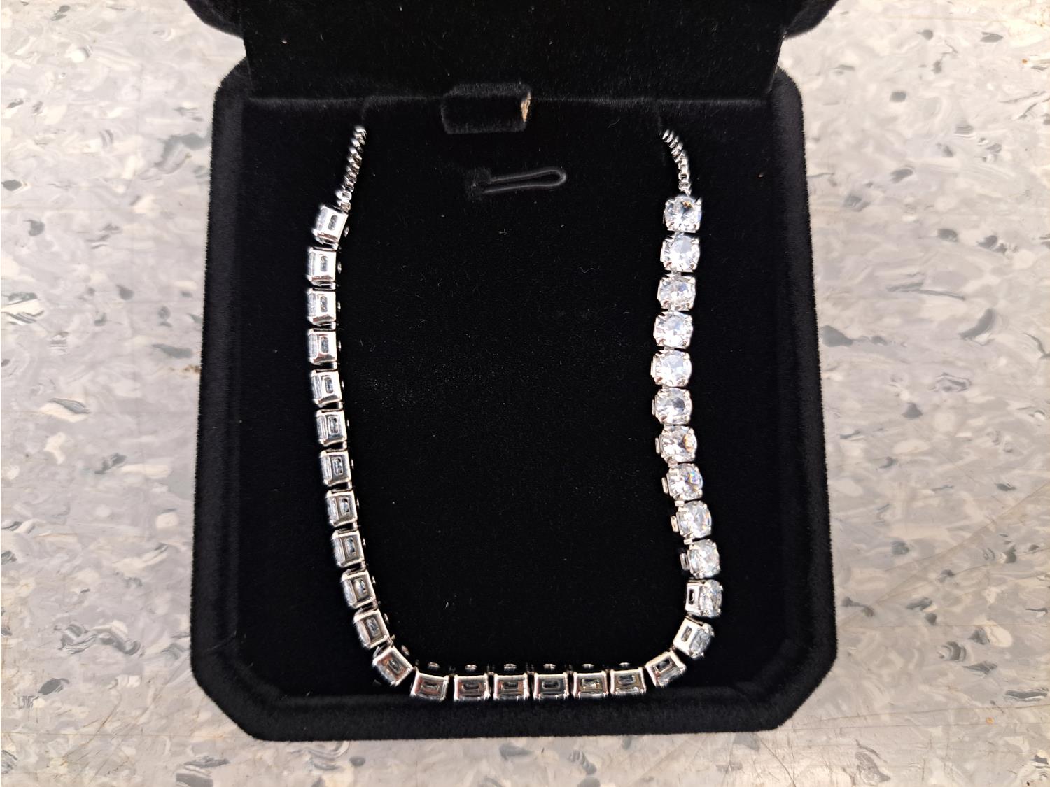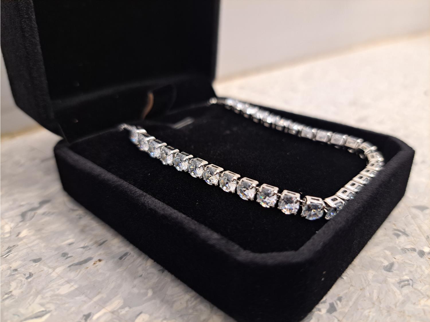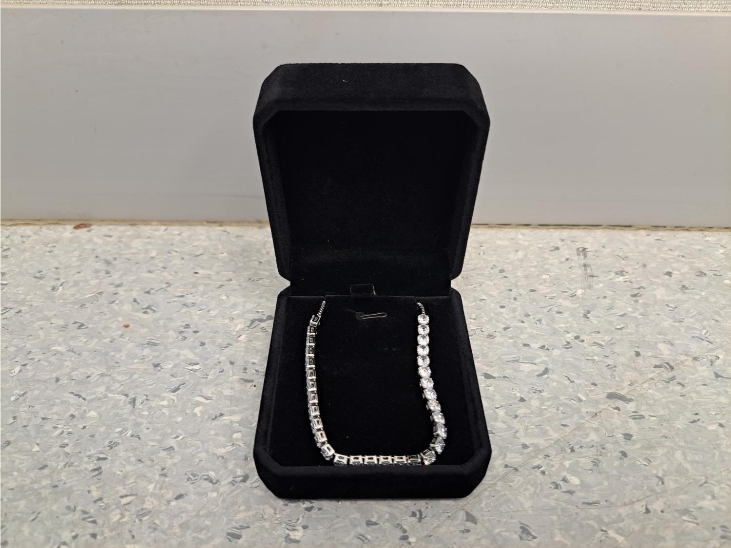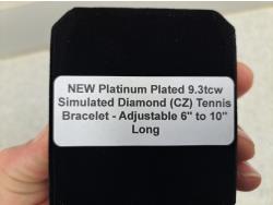 19 Platinum Plated 9.3Tcw Simulated Diamond Tennis Bracelet (Unused)