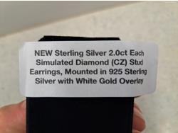 23 Sterling Silver 2.0Ct Each Simulated Diamond Stud Earrings (Unused)