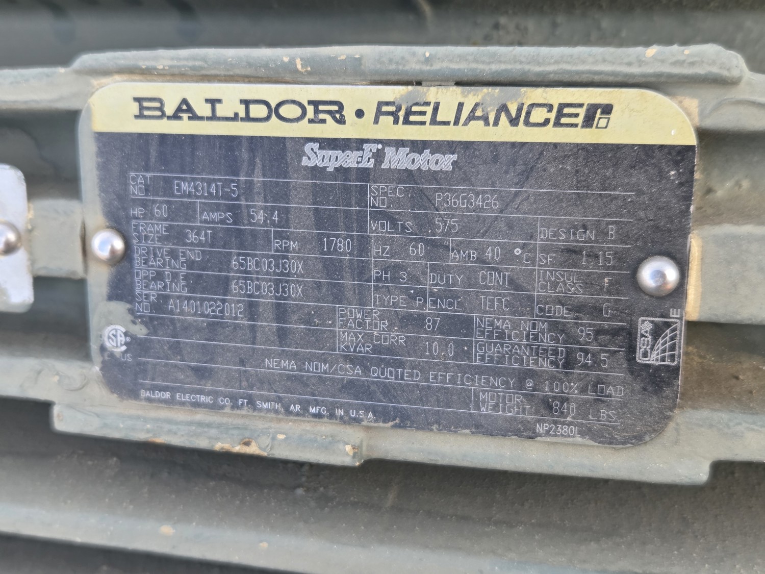 1476 EM4314T-5 60 HP Baldor Super-E Motor