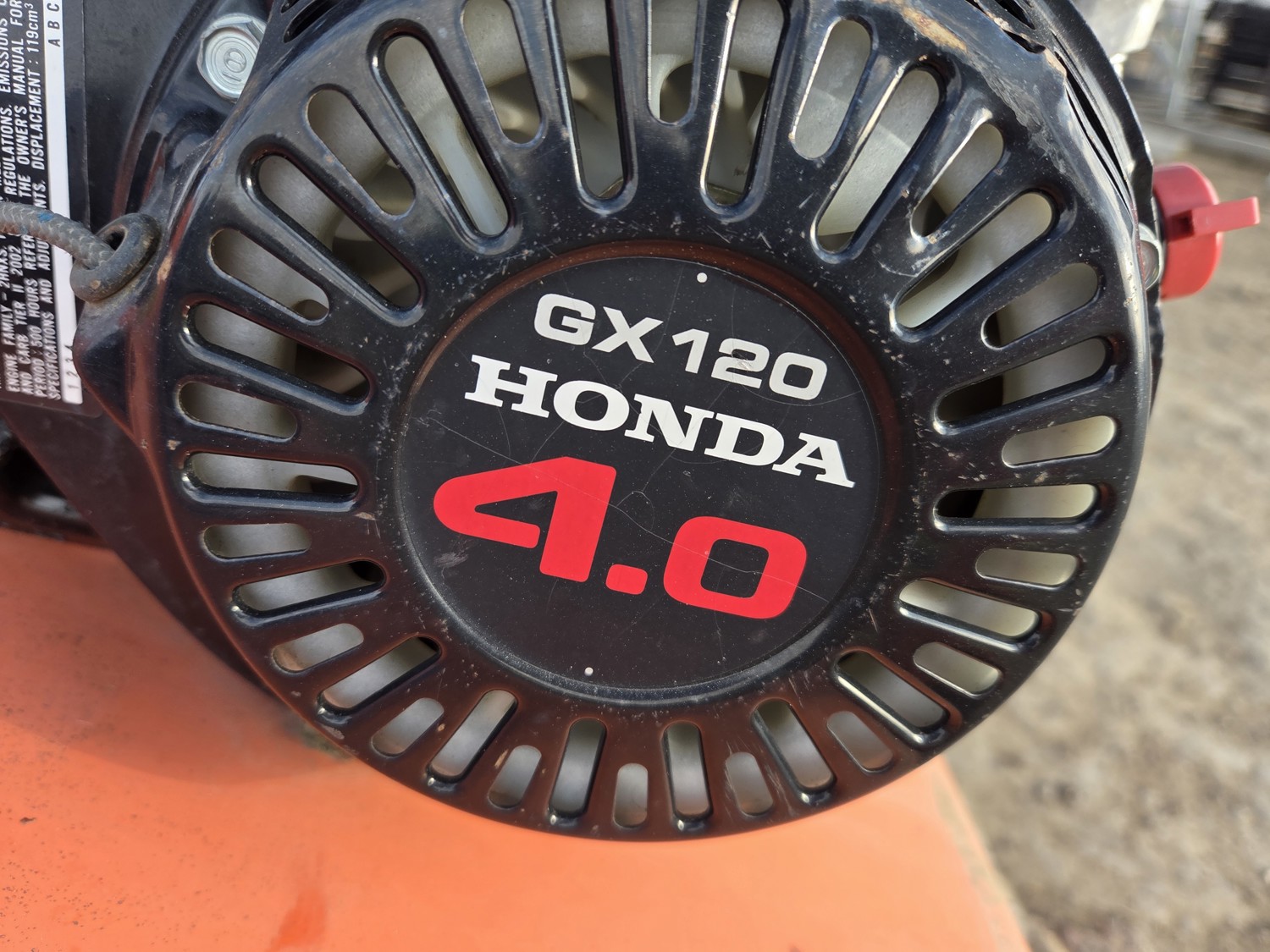 Honda GX120 4 HP motor, aerating width 25 inch, aerating pattern 3.6 inch, aerating pattern 6.8 inch, number of tines 42