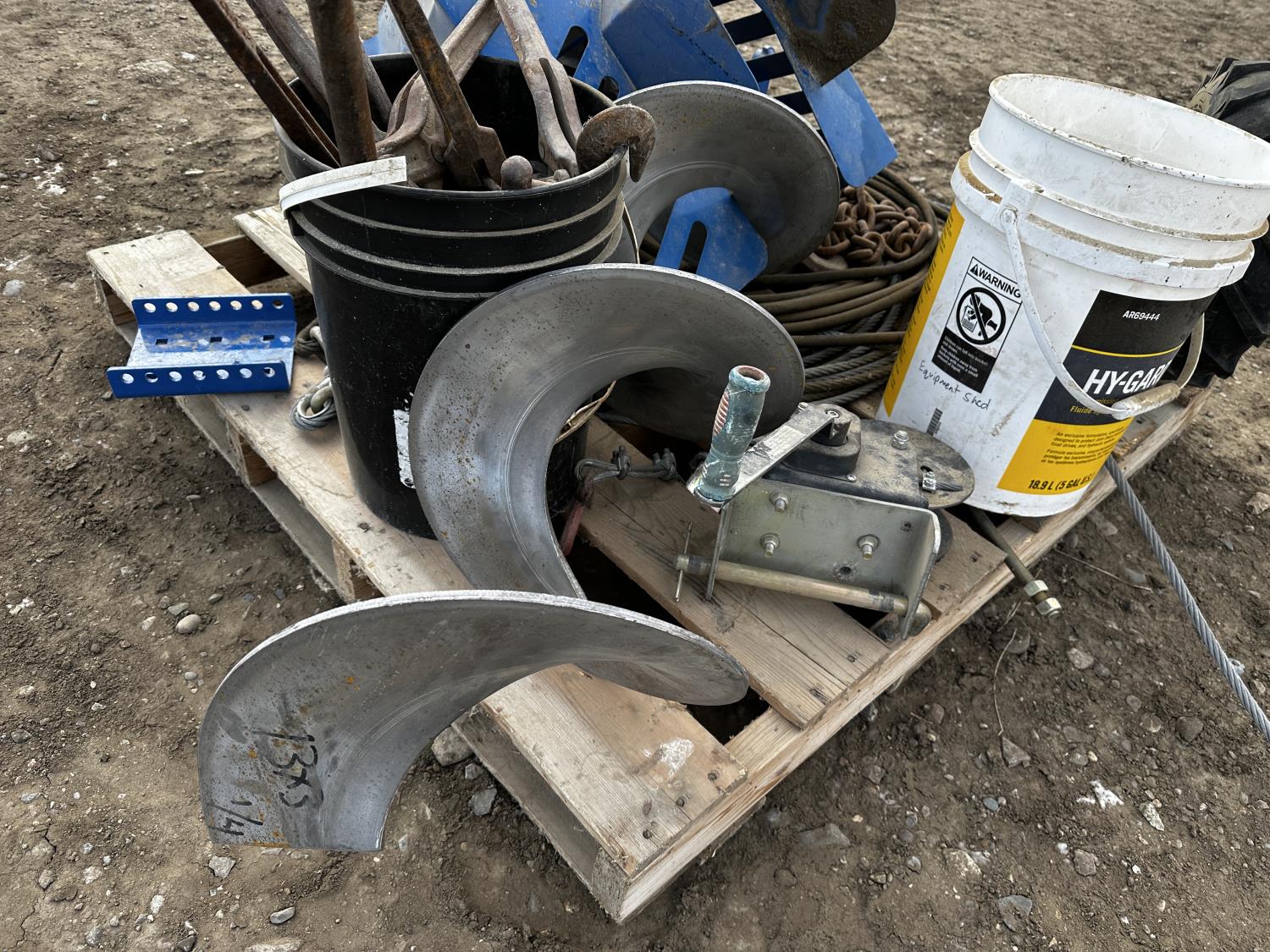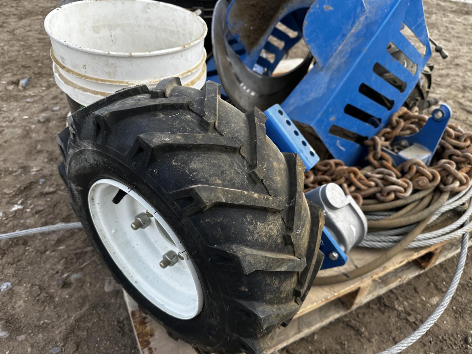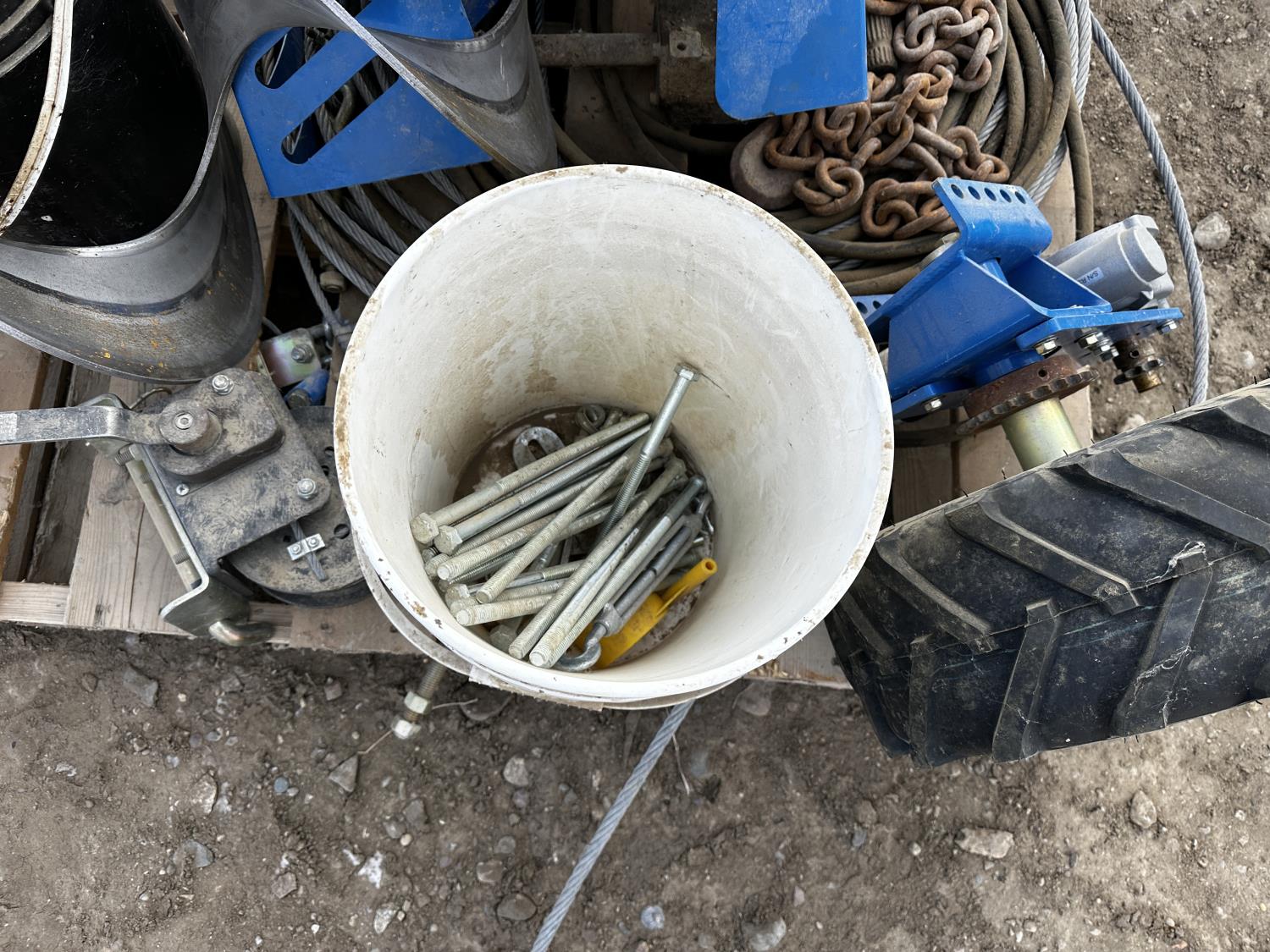 14 inch D, 118 inch Pipe, includes, QTY of miscellaneous bolts, come along, chains, pully reel, QTY of (2) 16x6.50-8 wheels w/ tires, flighting