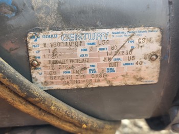 1 HP motor, 60 Hz, single phase, 12.0/6.5 Amp