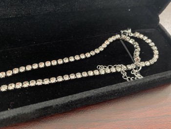 1071 Smartlife Platinum Plated 2.5 mm Simulated Diamond Tennis Necklace (Unused)