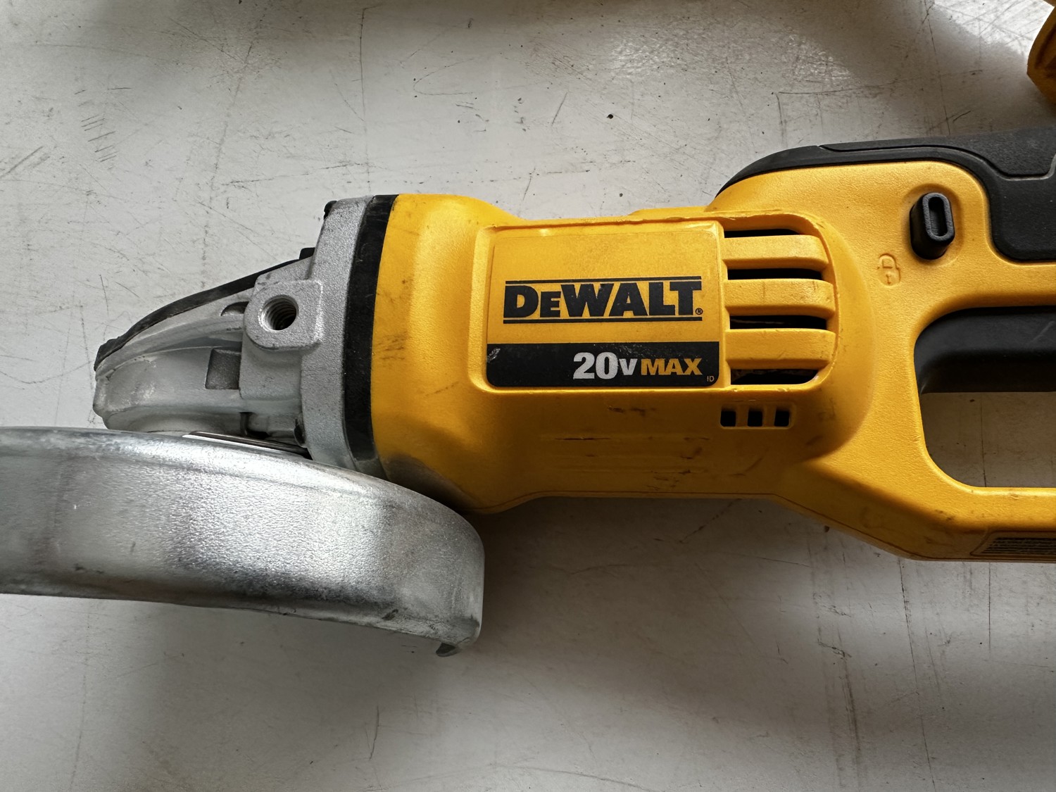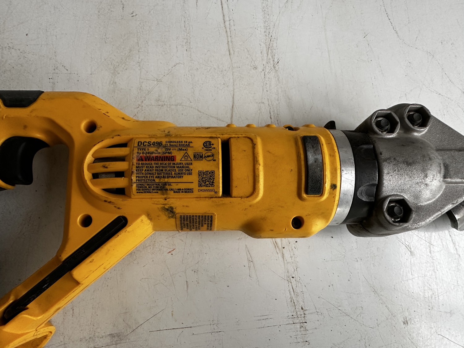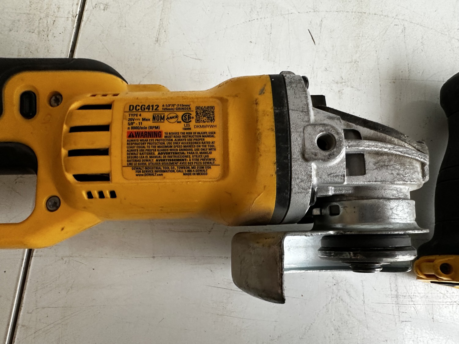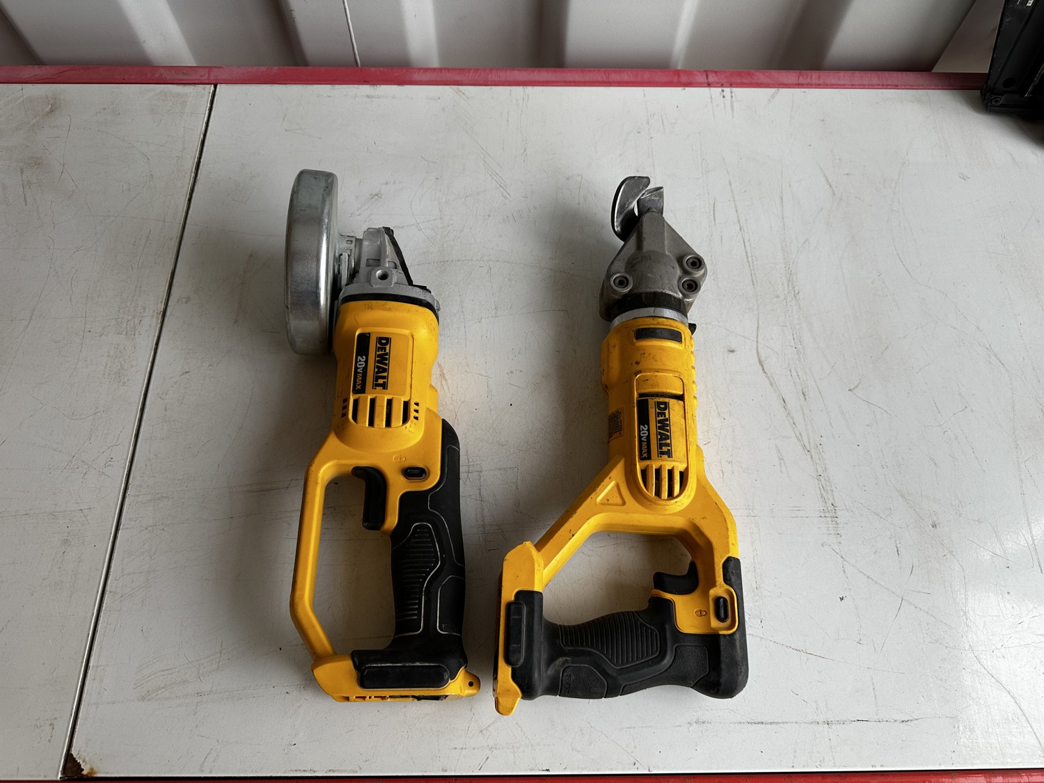 (1) DCS496 sheers, (1) DCG 412 angle grinder