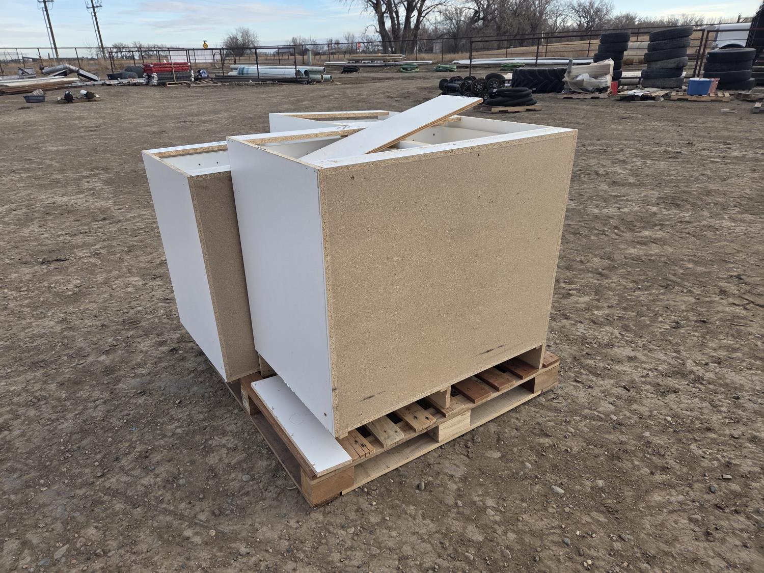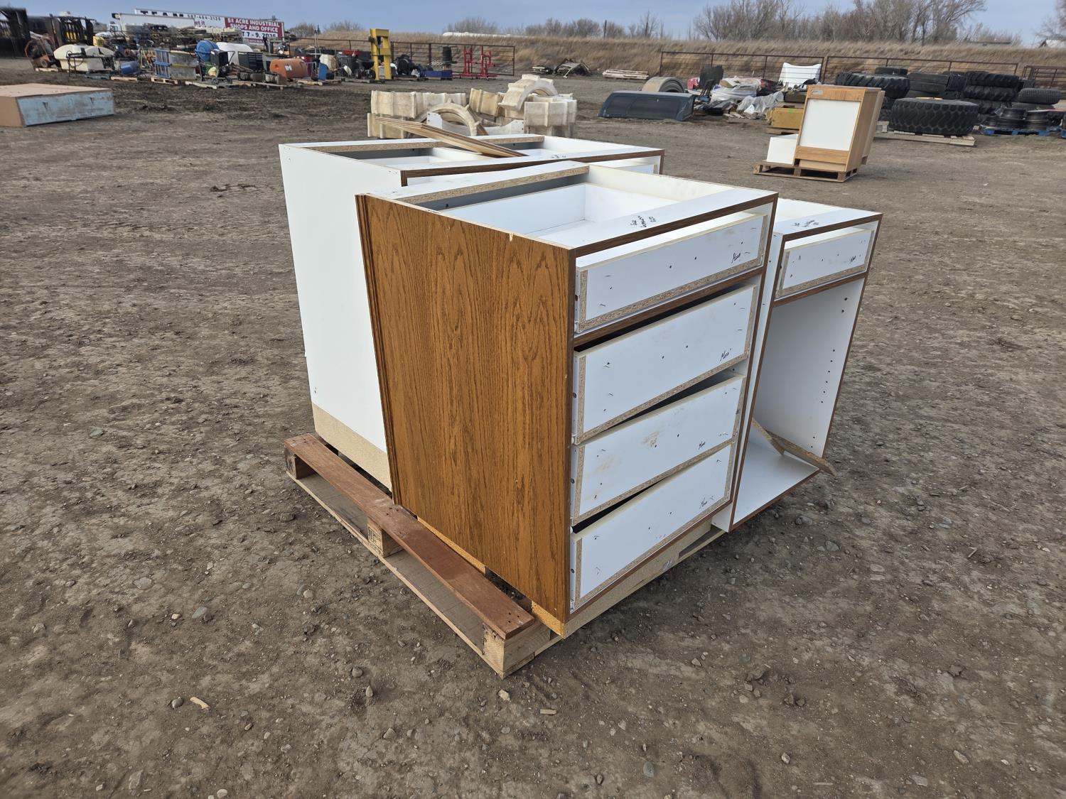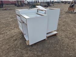 Dimensions - Small 4 drawer counter: 2 ft by 2 ft by 30-1/4 inch tall, Large counter: 3 ft by 2 ft by 35 inch tall, Cabinet: 24 inch by 19- 1/2 inch by 30-1/4 inch tall