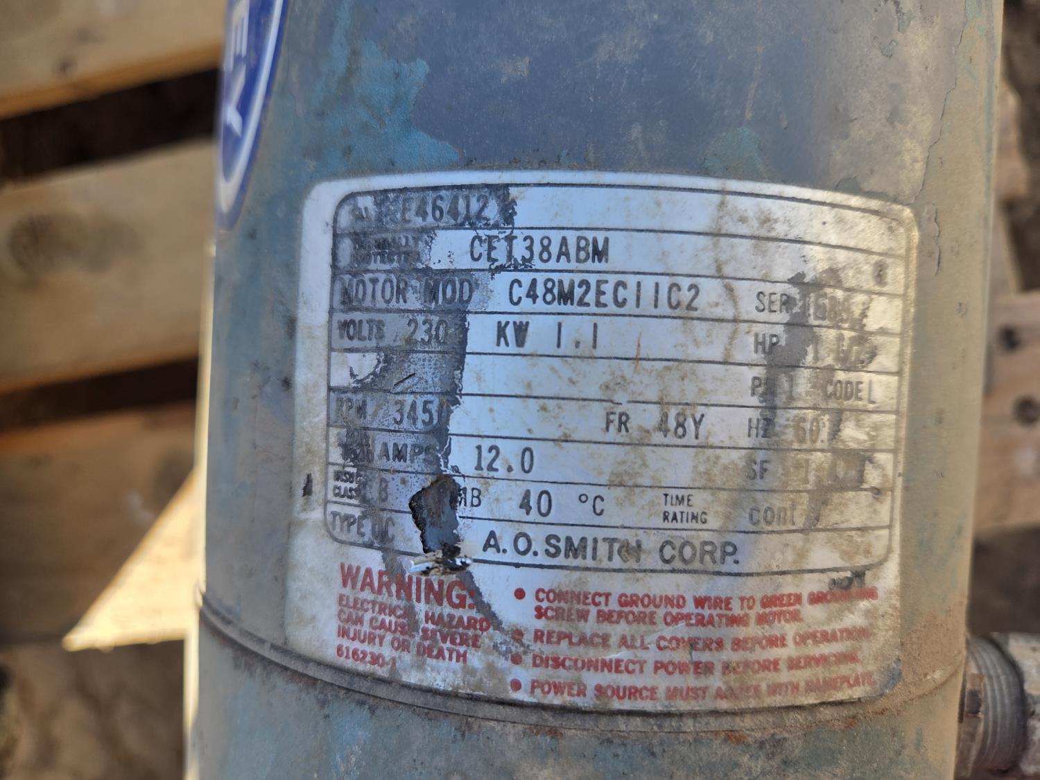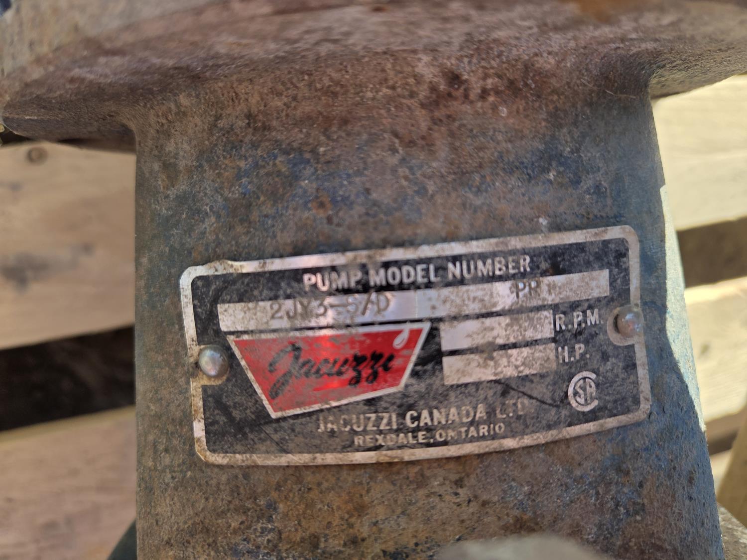 Jacuzzi pump model 2JX370, and WEG 2HP, 3-phase electric motor, and Grundfos model CR2-100 U-G-a-AUUE pump, and AO. Smith C48M2EC11C2 electric motor