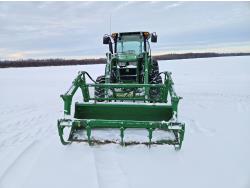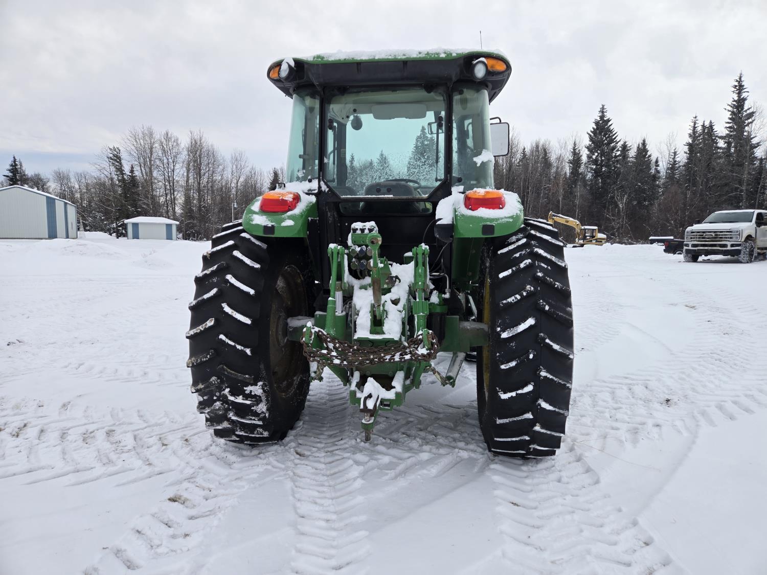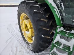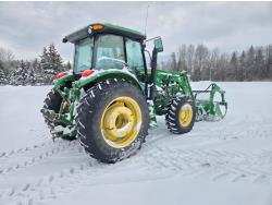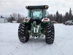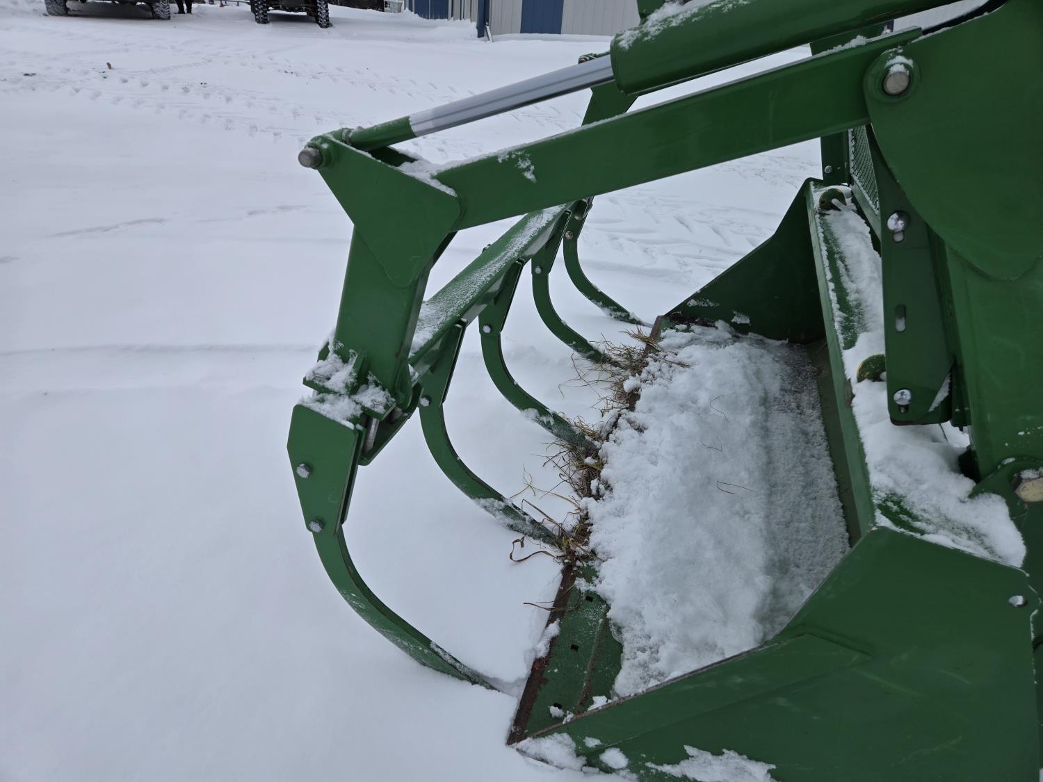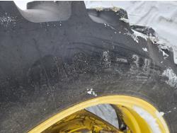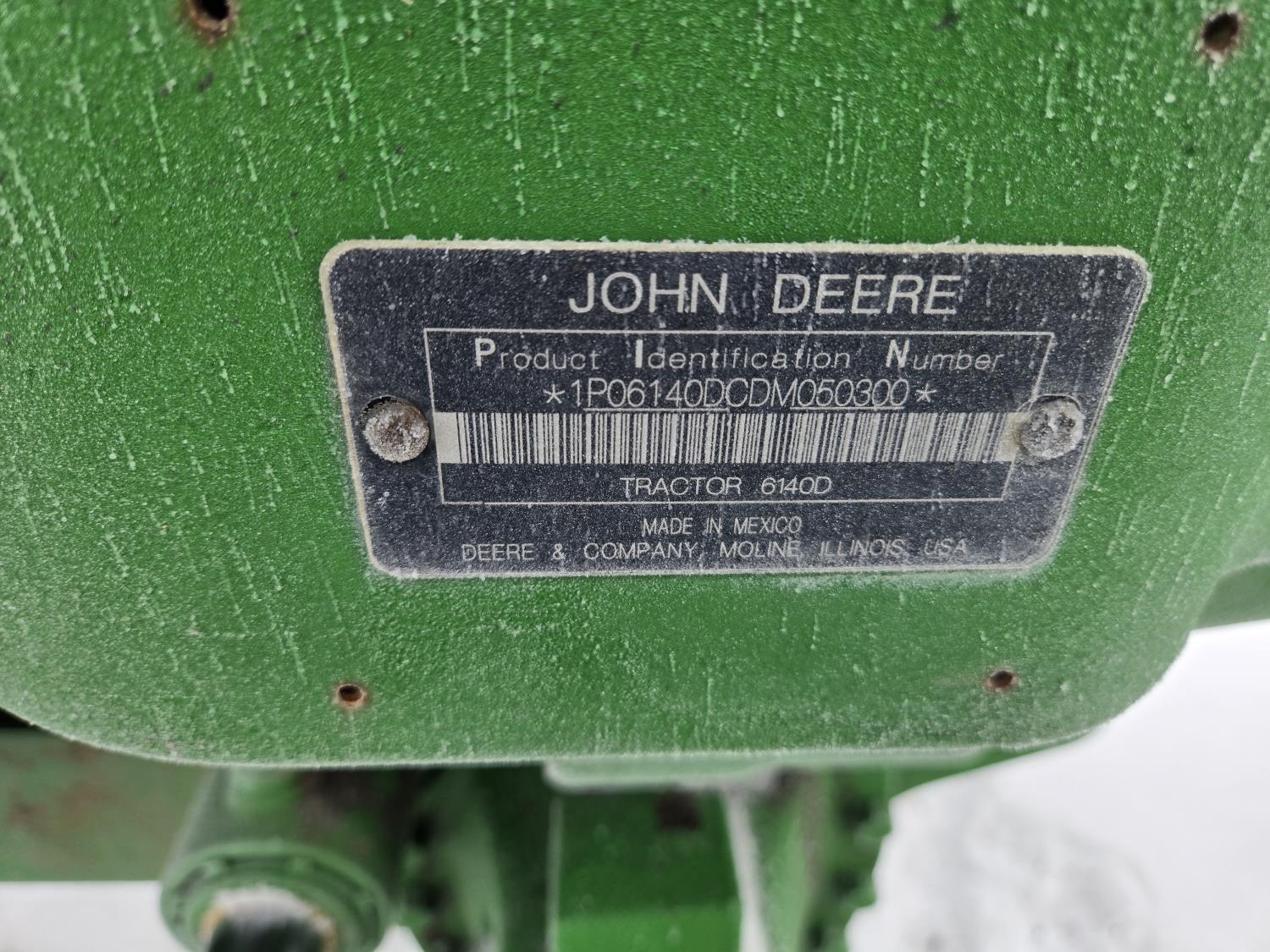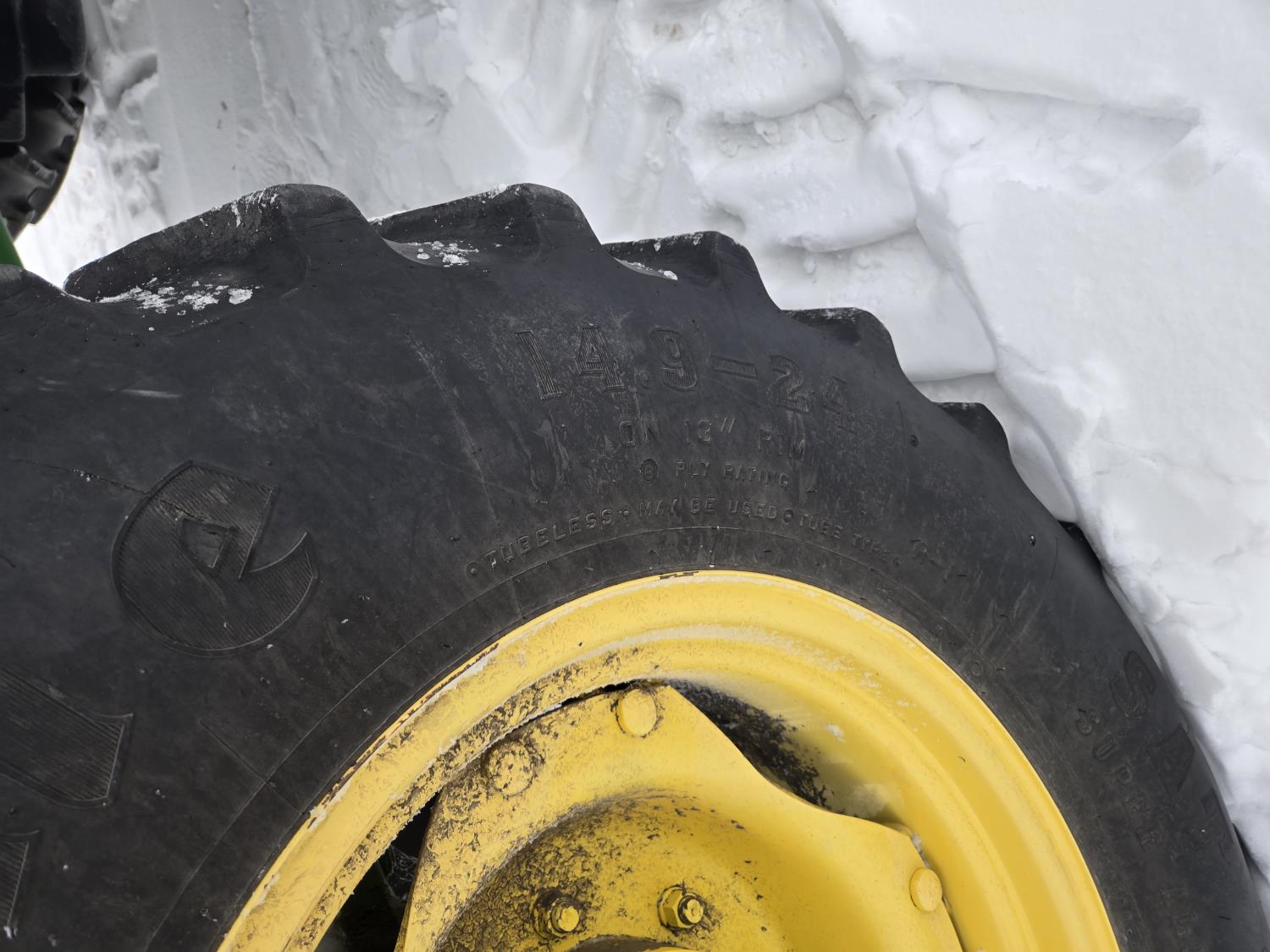 John Deere H310 loader, Q/A, 96 inch bucket, grapple, grill guard, mid mount hydraulic connection, John Deere 4.5 L 4 cylinder 137 HP, engine, 115 PTO HP, 9 speed partial synchro transmission, left hand power shuttle, cab, rear differential lock, joystick, A/C, radio, buddy seat, 540/1000 PTO, 3 point hitch, 3 rear hydraulic outlets, rear wheel weights, 14.9-24 front tires, 18.4-38 rear tires