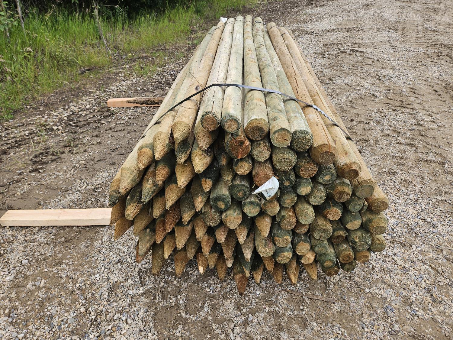 321 (100) 3-4 Inch X 10 Ft Treated Fence Posts (Unused)