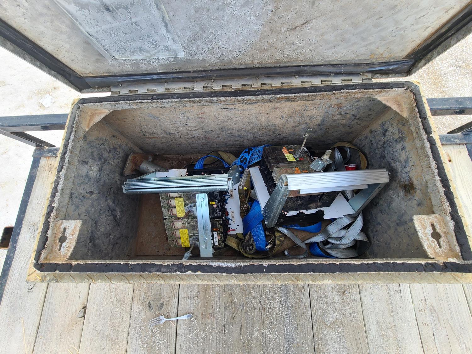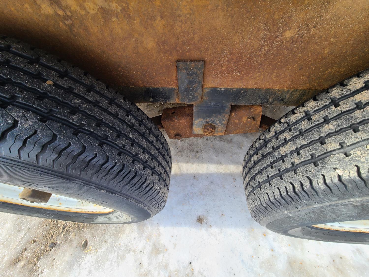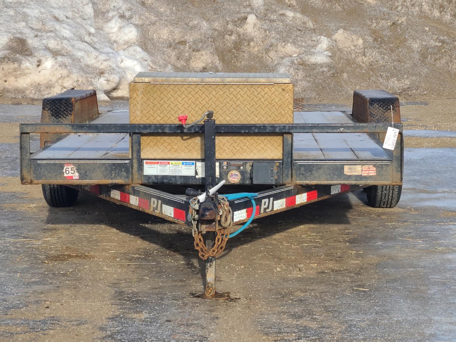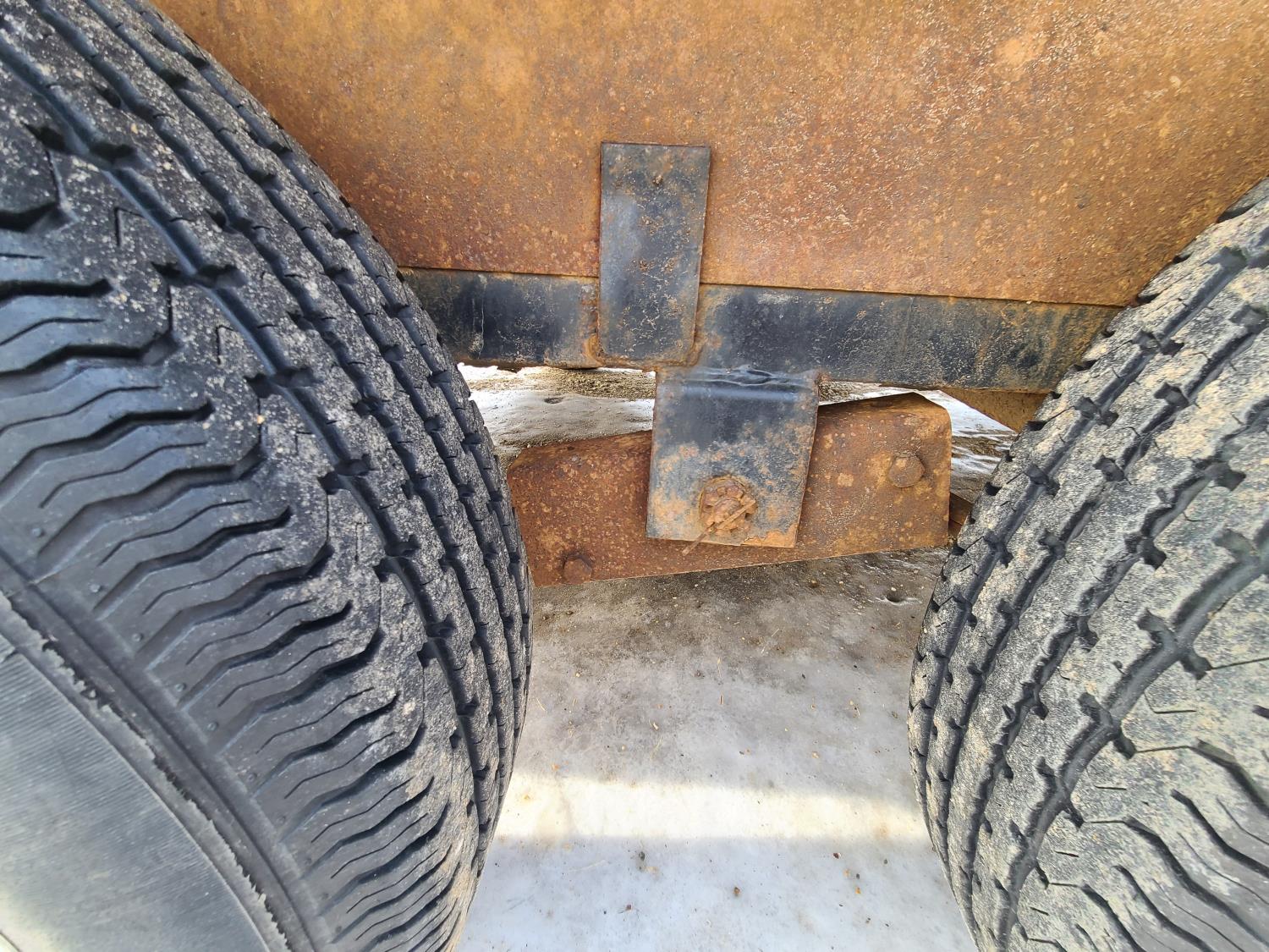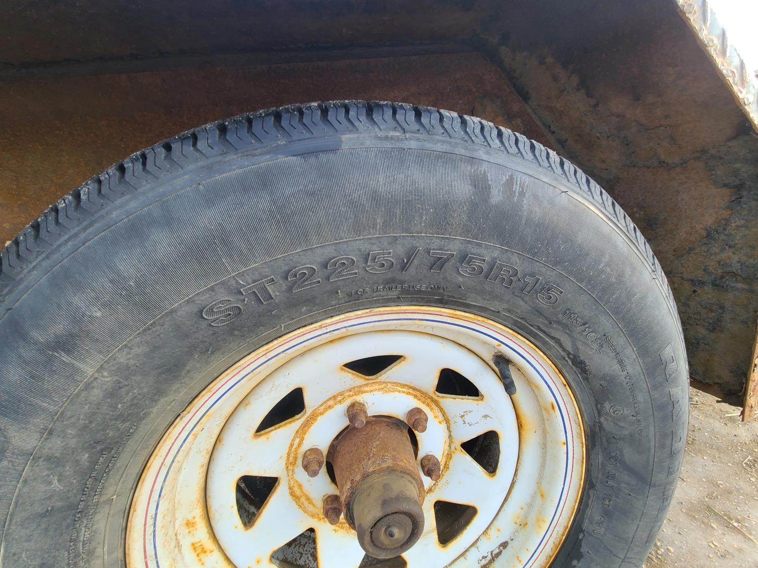 86 inch wide deck, wood deck, slide in ramps, electric brakes, torsion suspension, tool / storage box, stake pockets, 2 5/16 ball hitch, 5200 lb axles, 225/75R15 tires