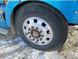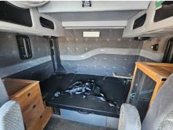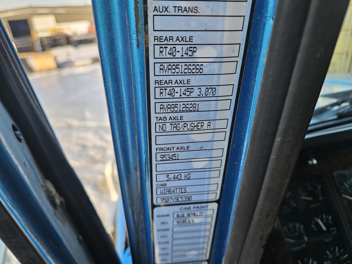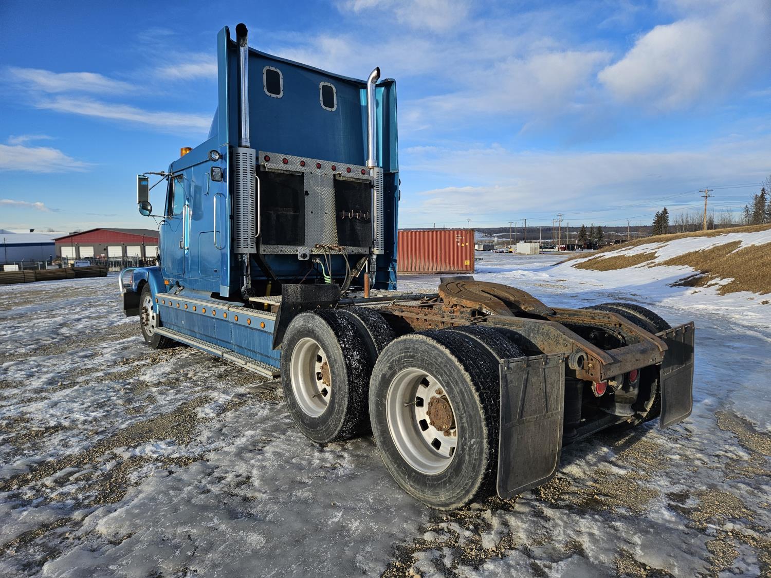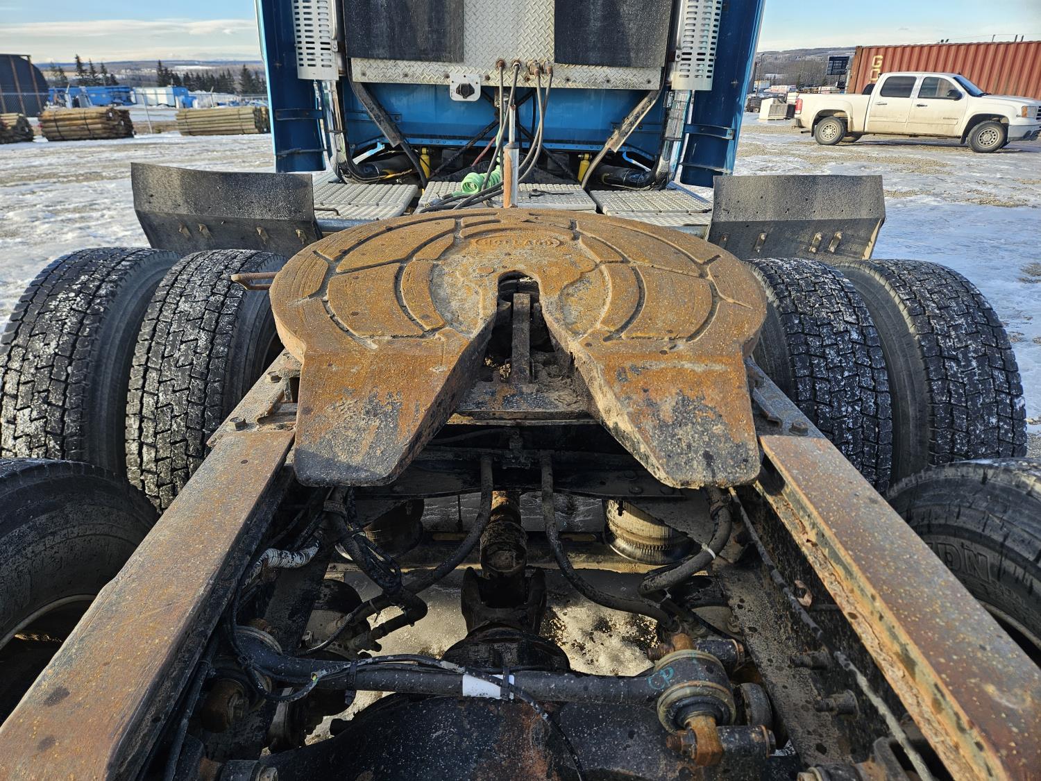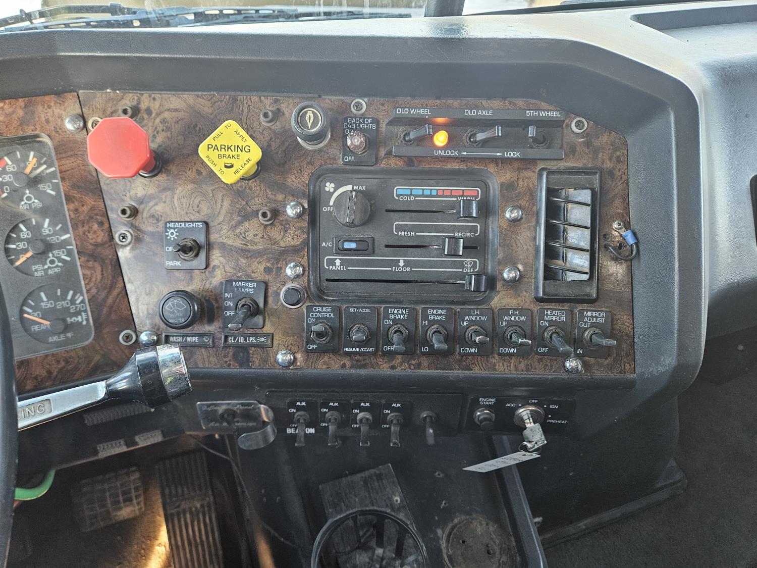 Volvo 12.1 L 6 cylinder 425 HP diesel engine, engine brake, Eaton Fuller VT 1414 14 speed manual transmission, high rise 52 inch sleeper, bunk beds, A/C, cruise control, air ride seats, aluminum moose bumper, aluminum headache rack, air ride suspension, 12,000 lb front axle, 40,000 lb rear axles, diff lock, super 40 rear ends, ECM issue when battery dies it resets the mileage, all aluminum wheels, 11R24.5 tires
