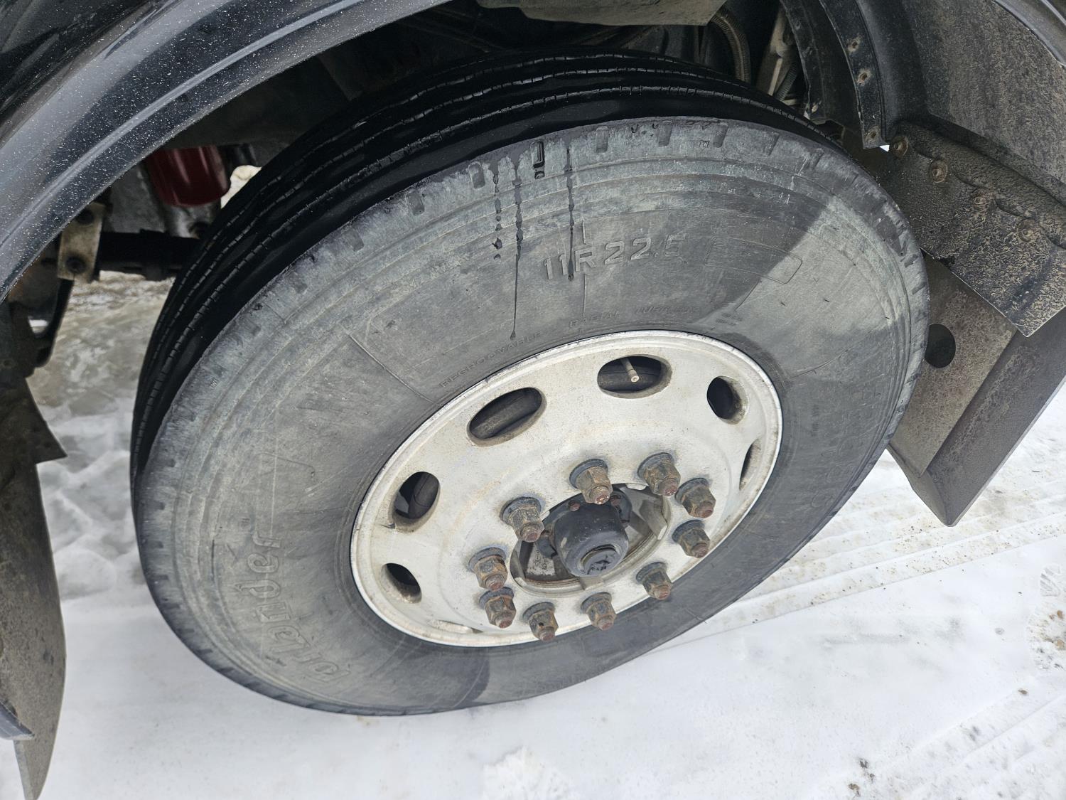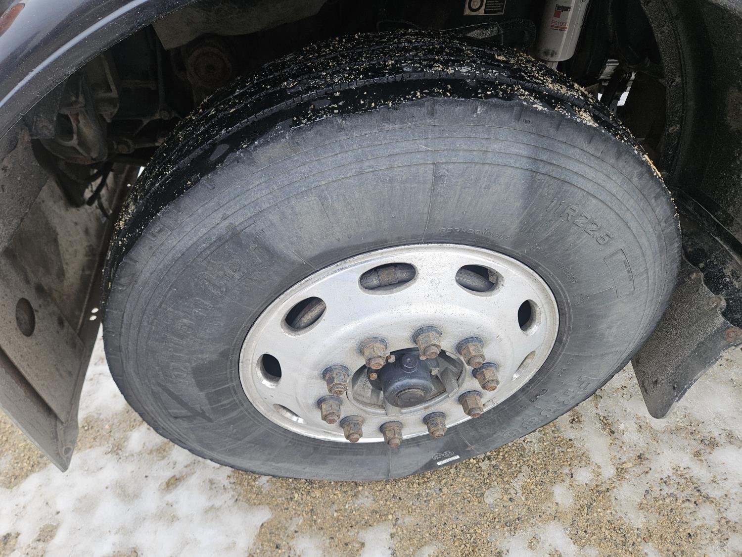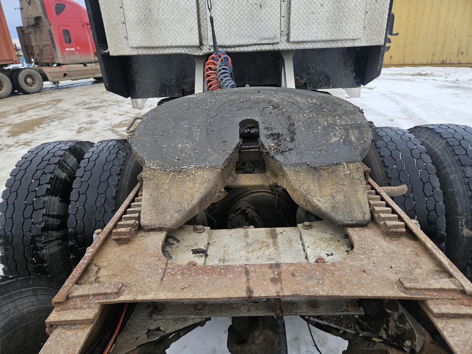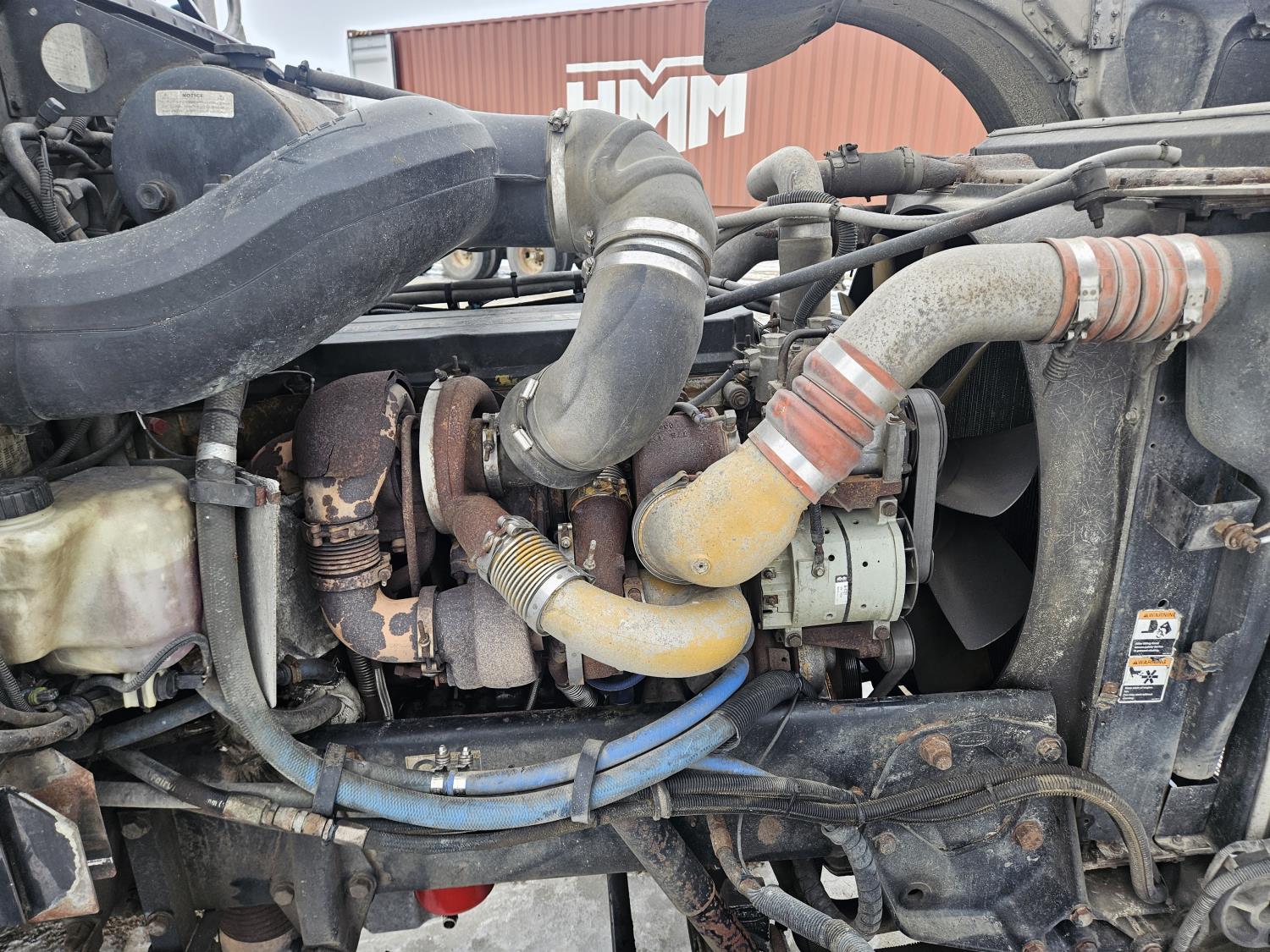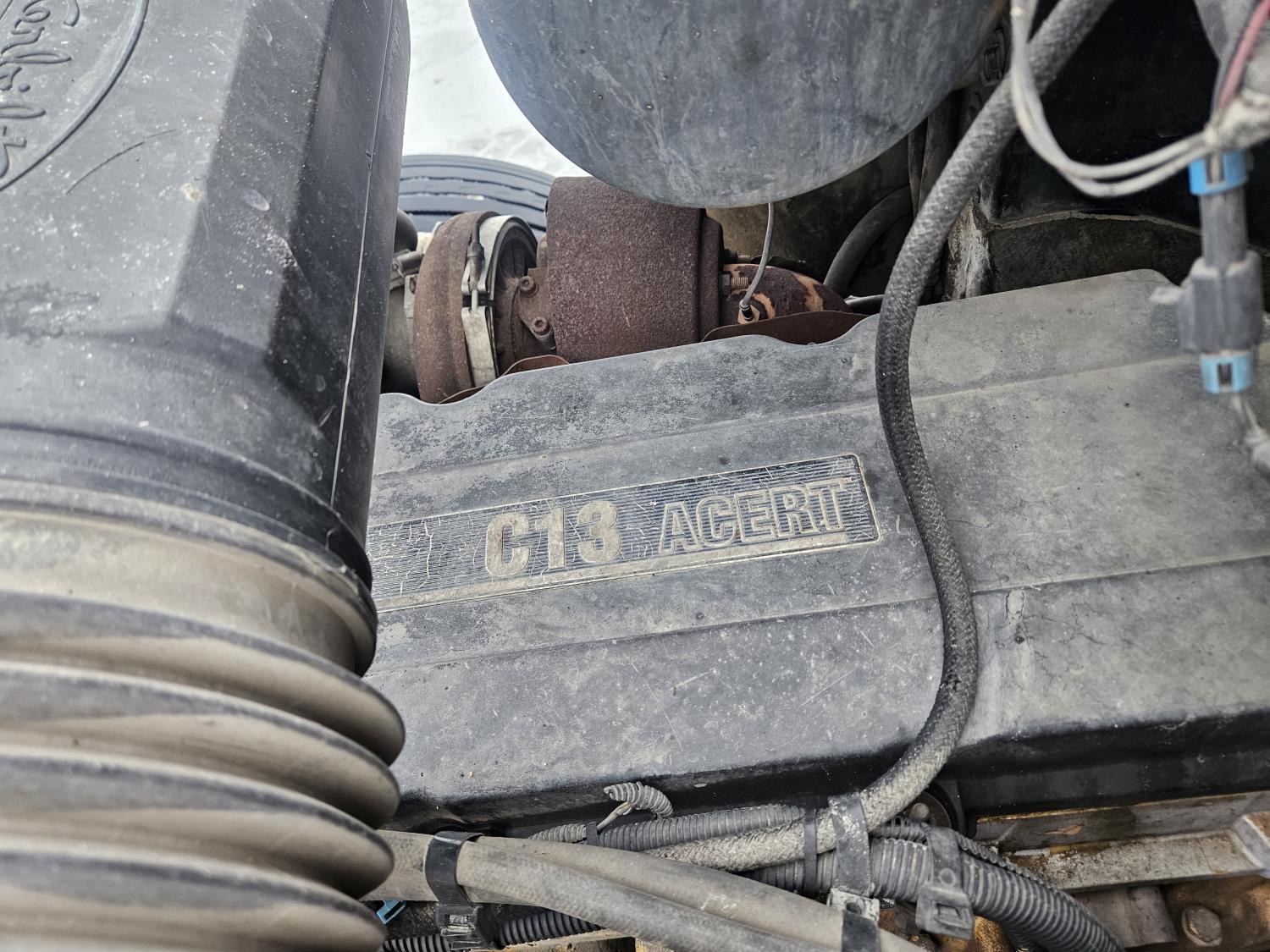 Caterpillar C-13 12.0 L 6 cylinder diesel engine, engine brake, engine block heater, Eaton Fuller 18 speed manual transmission, A/C, cruise control, leather interior, air ride seats, radio, aluminum headache rack, air ride suspension, 12,000 lb front axle, 38,000 lb rear axles, full lockers, 3.70 ratio, all aluminum wheels, 11R22.5 tires