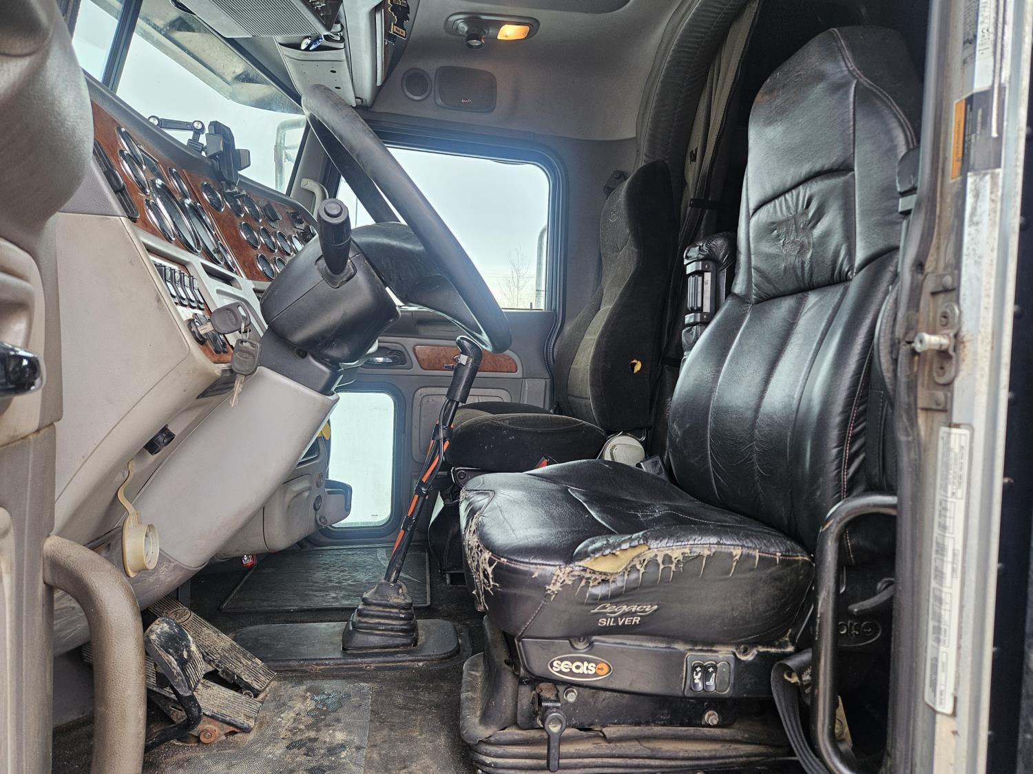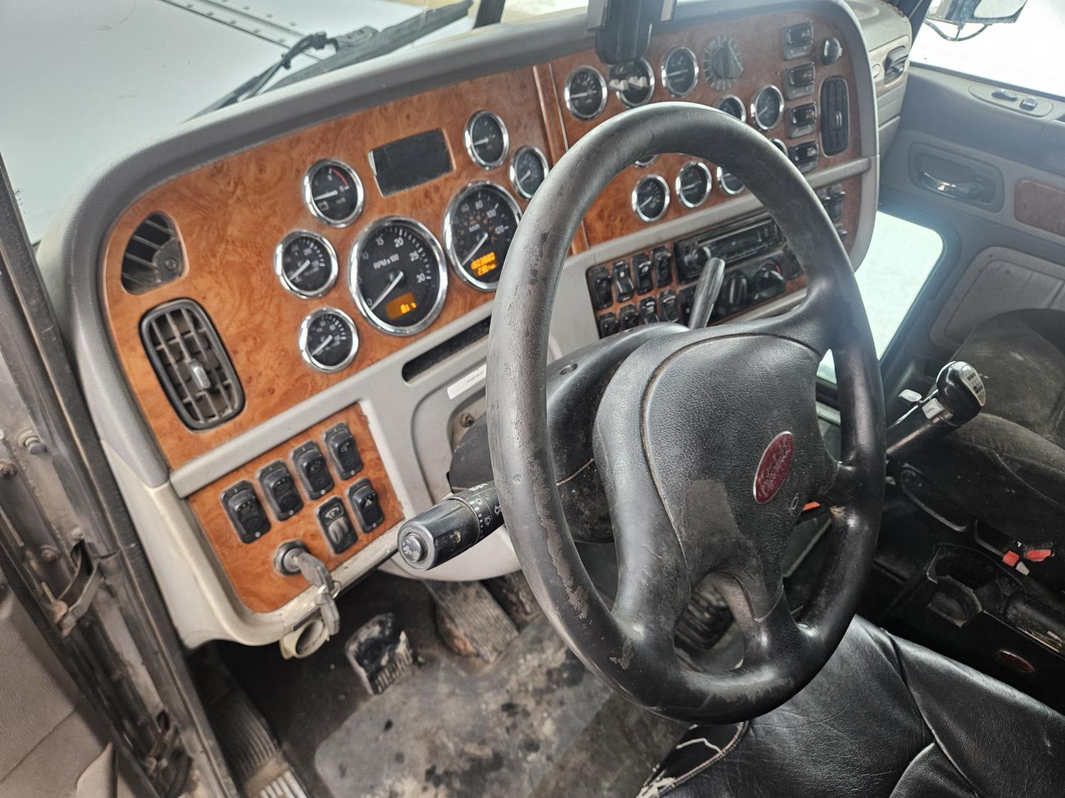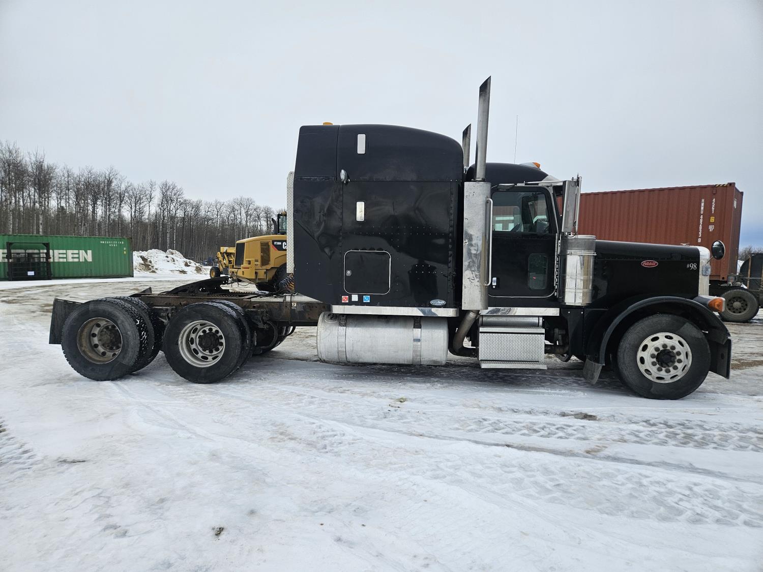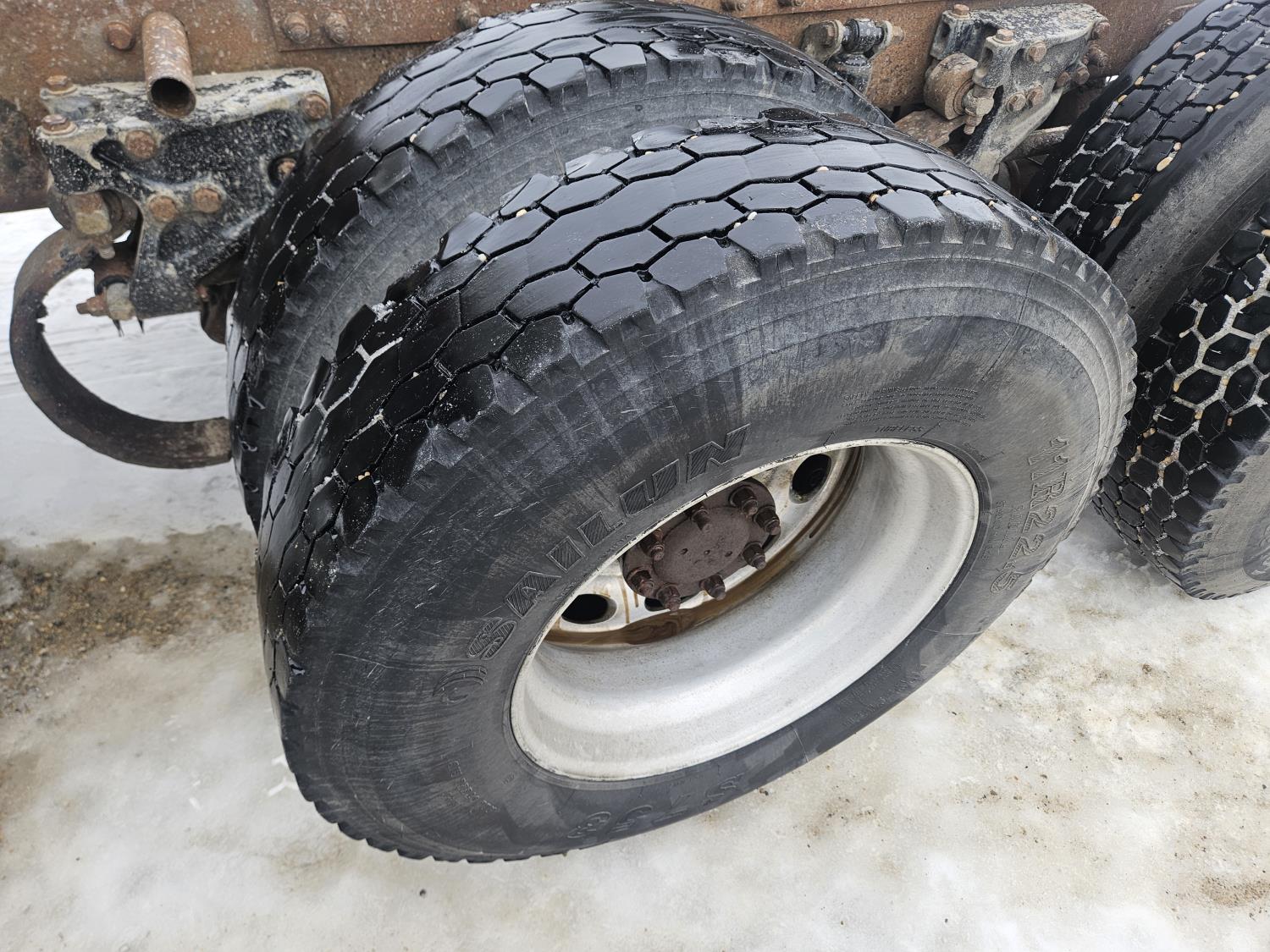 Caterpillar C-13 12.0 L 6 cylinder diesel engine, engine brake, engine block heater, Eaton Fuller 18 speed manual transmission, A/C, cruise control, leather interior, air ride seats, radio, aluminum headache rack, air ride suspension, 12,000 lb front axle, 38,000 lb rear axles, full lockers, 3.70 ratio, all aluminum wheels, 11R22.5 tires