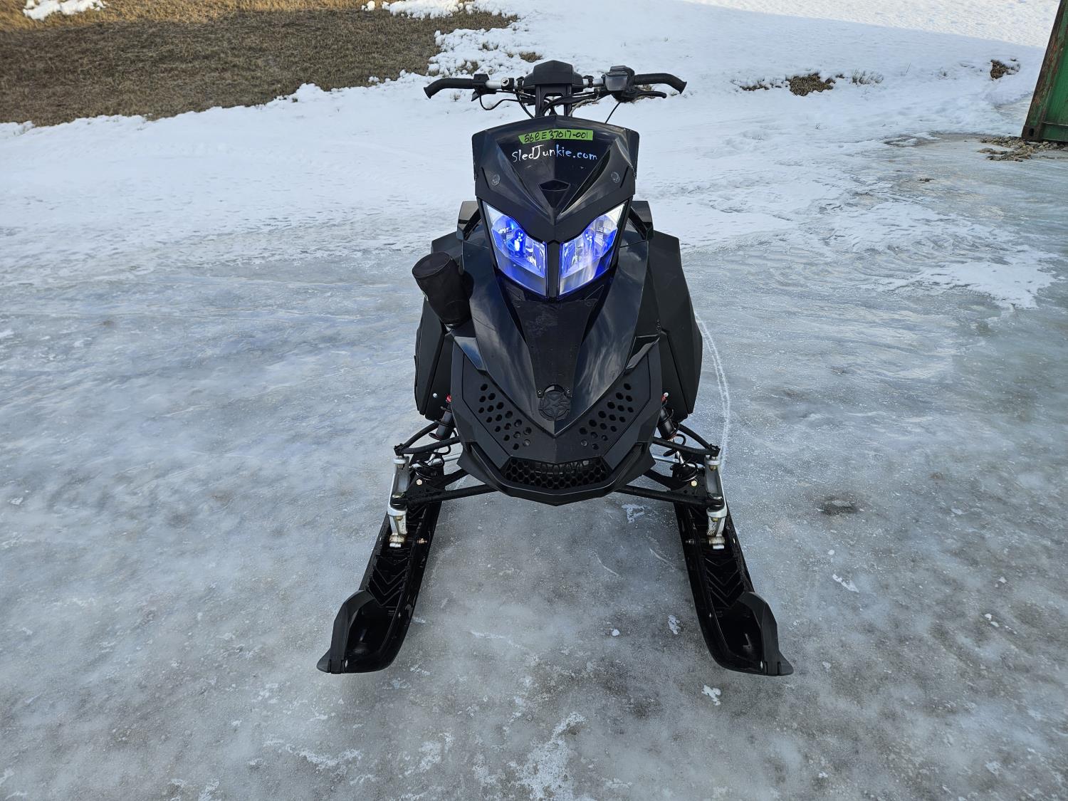 800 cc 2 cylinder fuel injected 2 stroke liquid cooled engine, windshield, hand and thumb warmers, high rise handlebars, 163 inch long track, 16 inch wide track, 2.5 inch paddles, scratchers, Boondocker turbo, T motion suspension, linq system, always run on AV gas