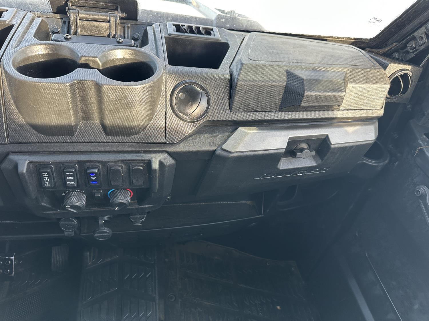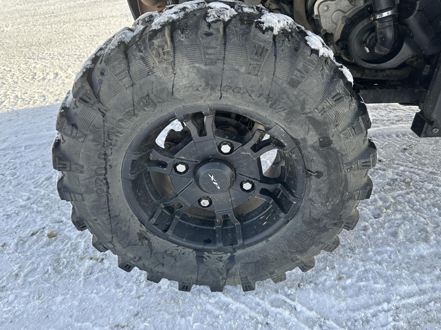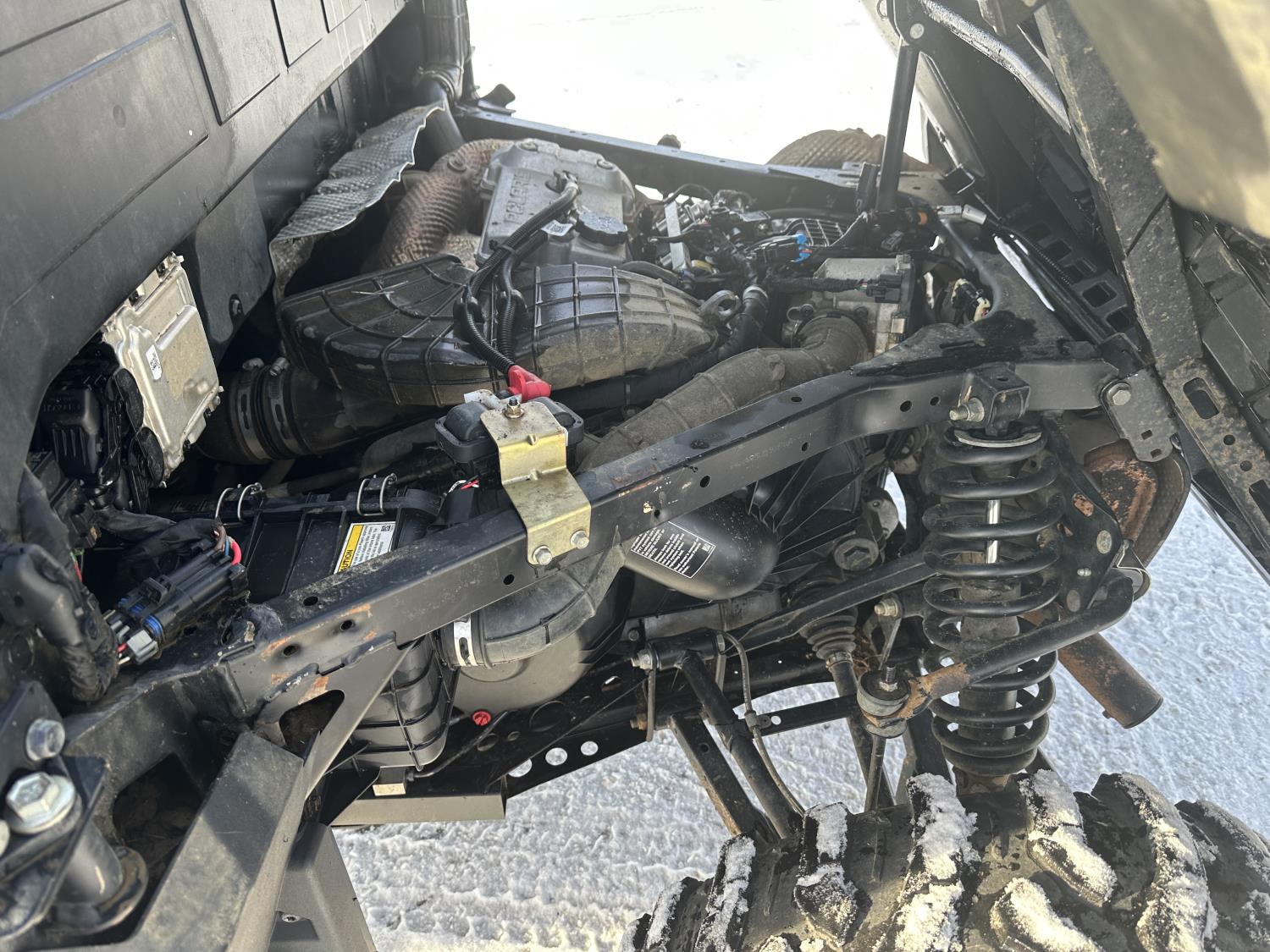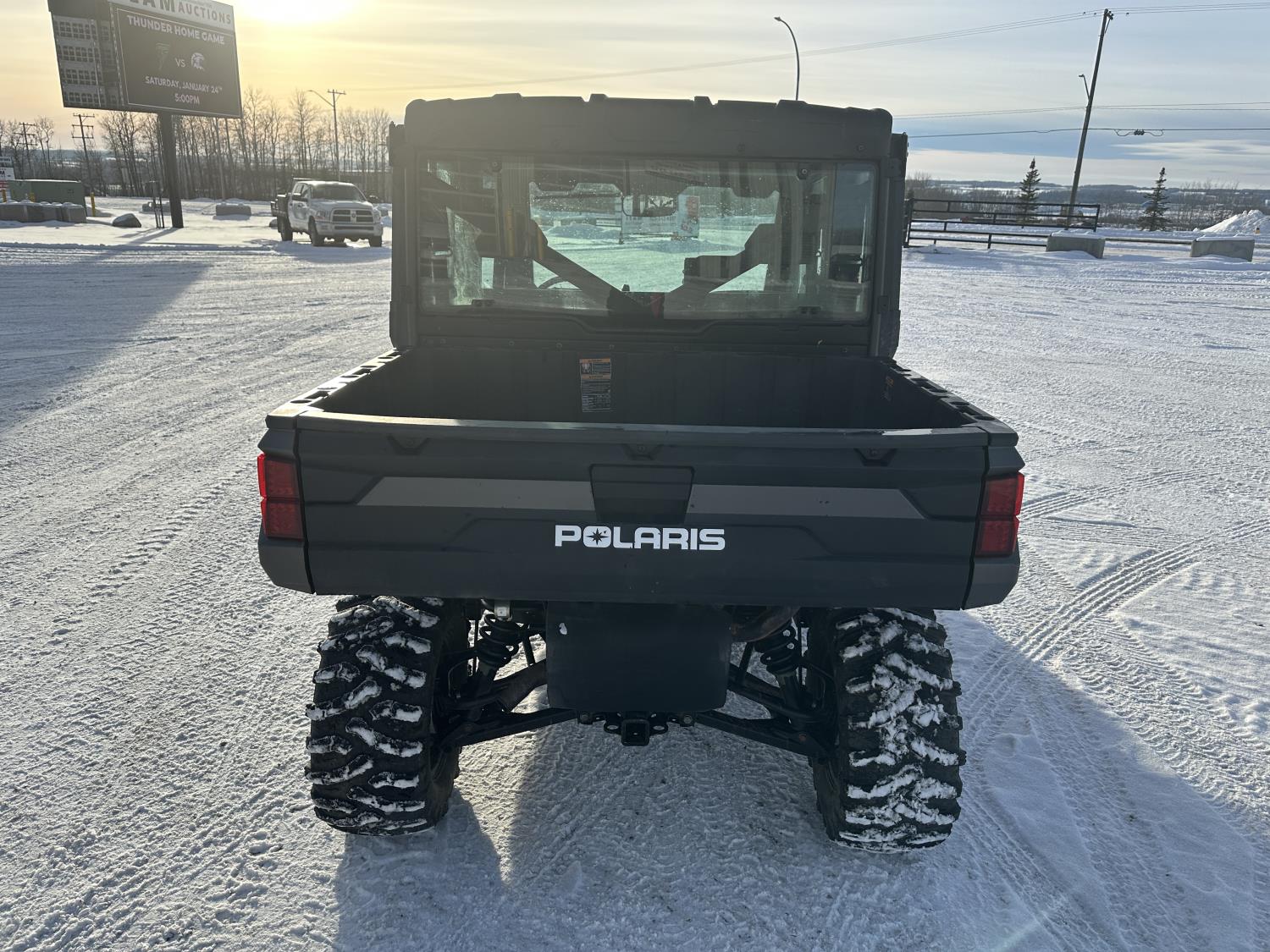 1000 cc engine, automatic transmission, Hi/Lo range, reverse, 4 door enclosed cab, 5 passengers, A/C, heater, windshield, power steering, front winch, front brush guard, manual dump box, receiver hitch, Personal inspection is recommended before purchasing, 27X9.00R14 front tires, 27X11.00R14 rear tires