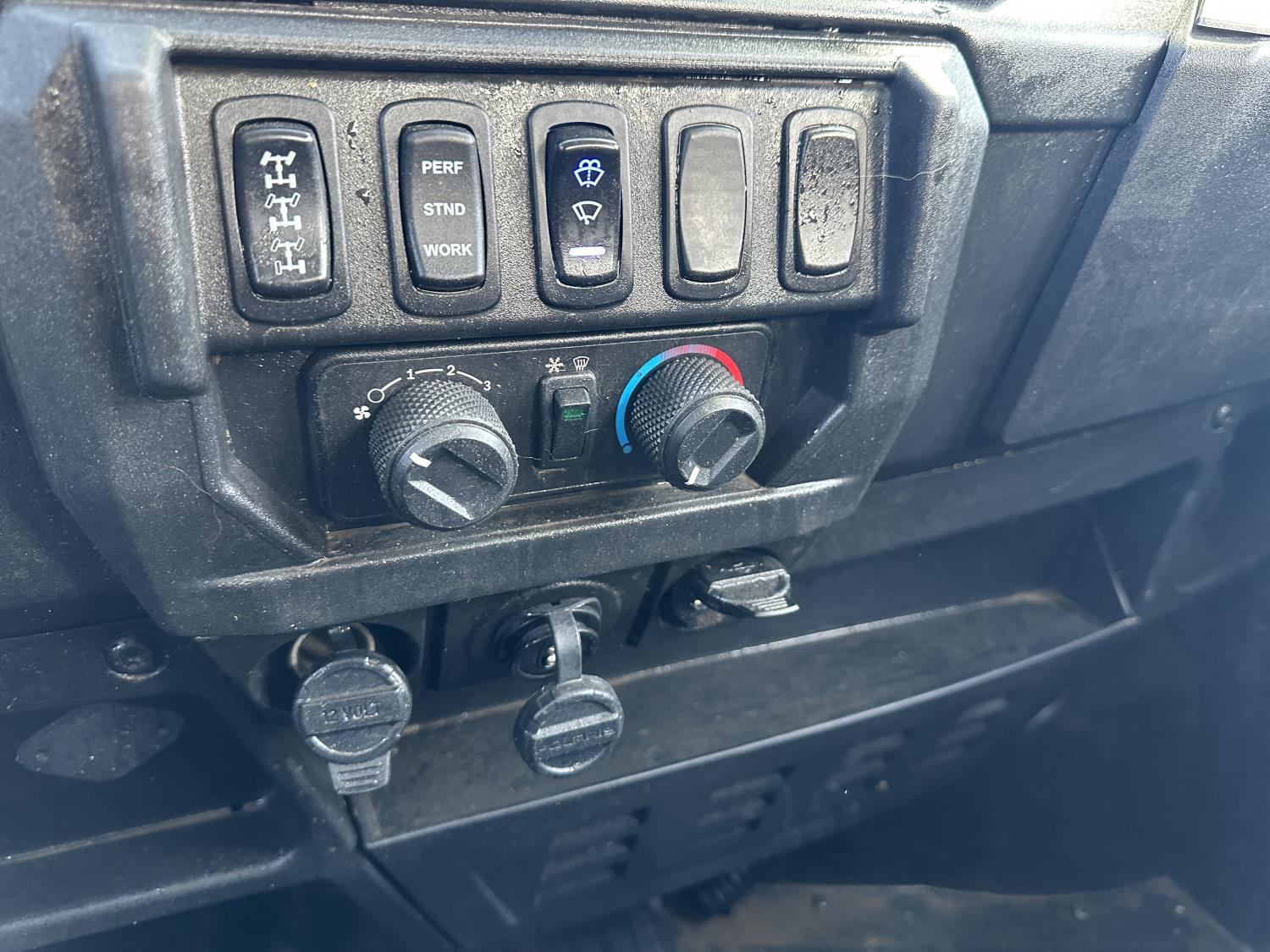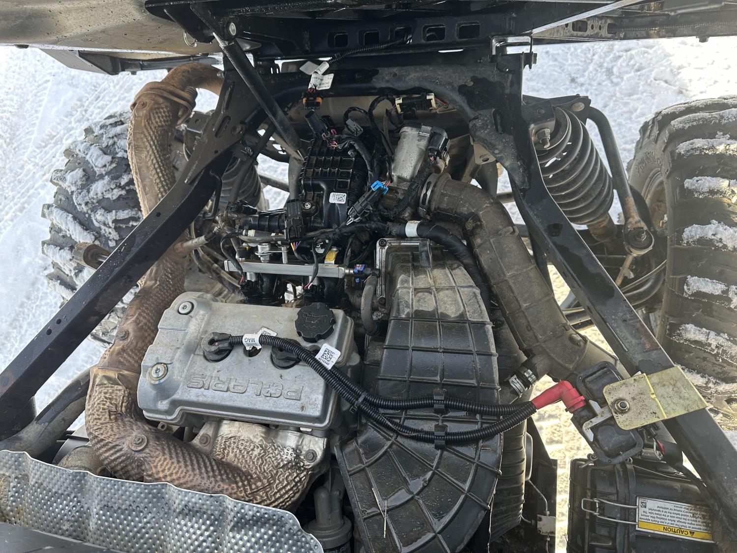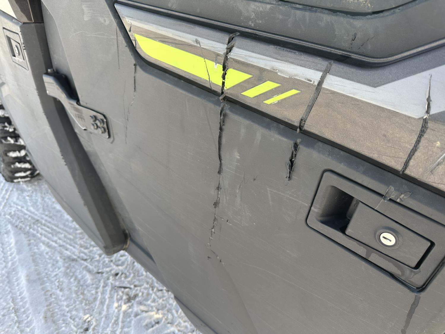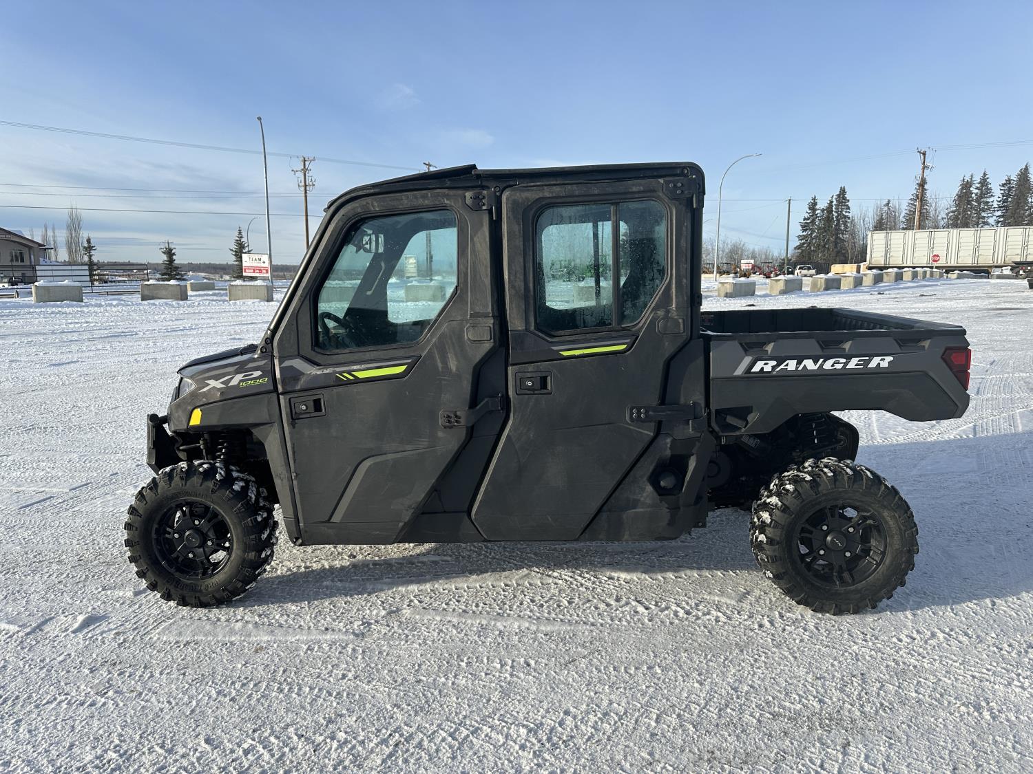 1000 cc engine, automatic transmission, Hi/Lo range, reverse, 4 door enclosed cab, 5 passengers, A/C, heater, windshield, power steering, front winch, front brush guard, manual dump box, receiver hitch, Personal inspection is recommended before purchasing, 27X9.00R14 front tires, 27X11.00R14 rear tires