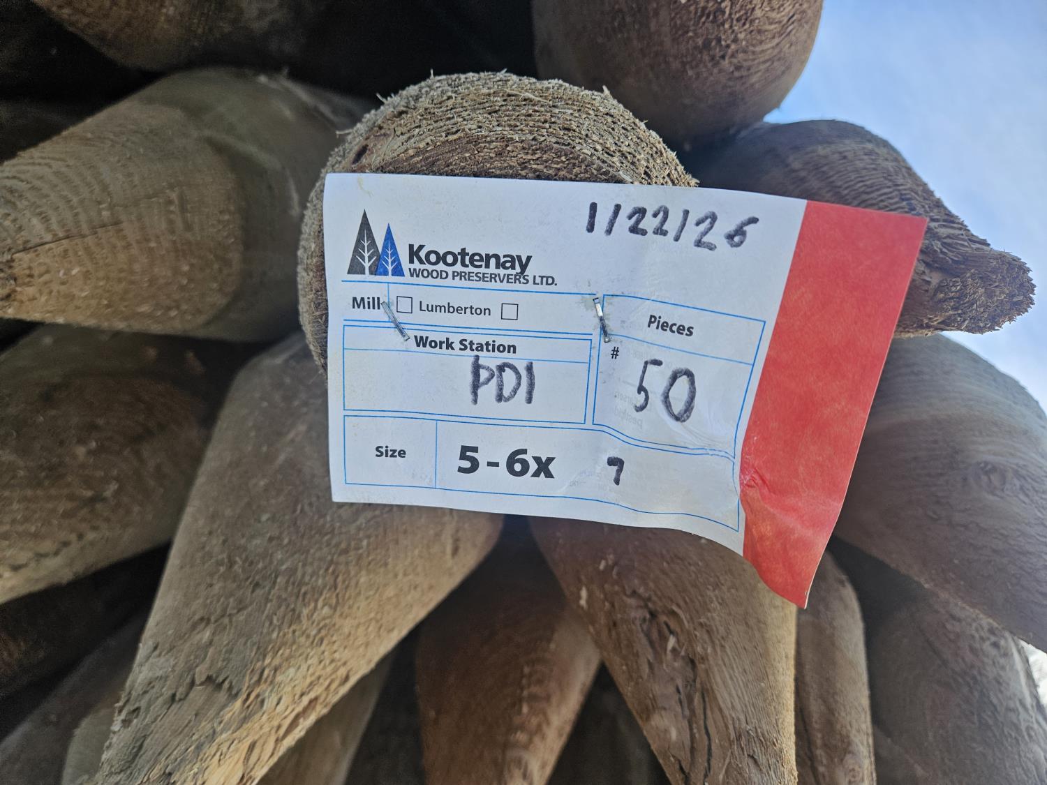 326 (50) 5-6 Inch X 7 Ft Treated Fence Posts (Unused)